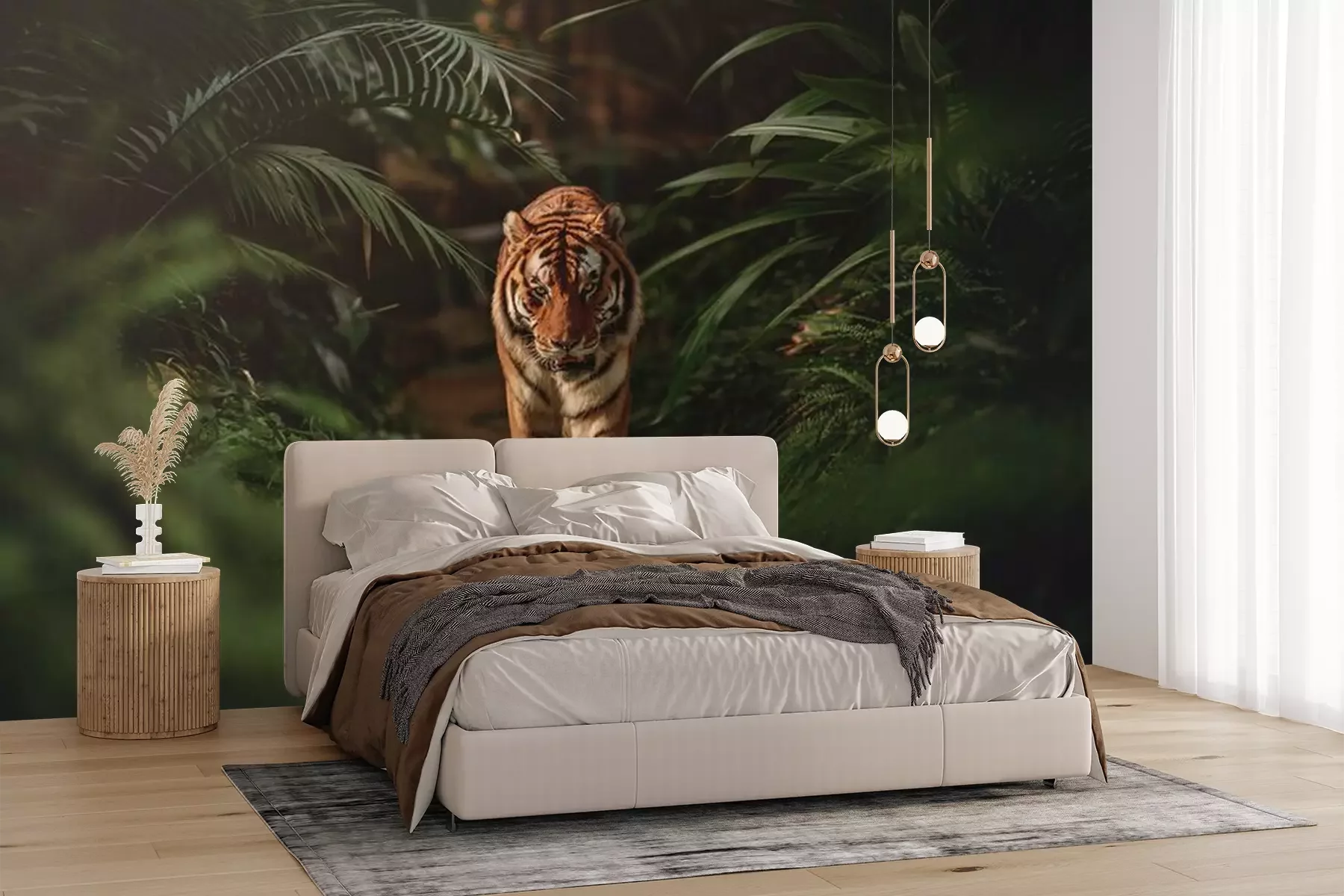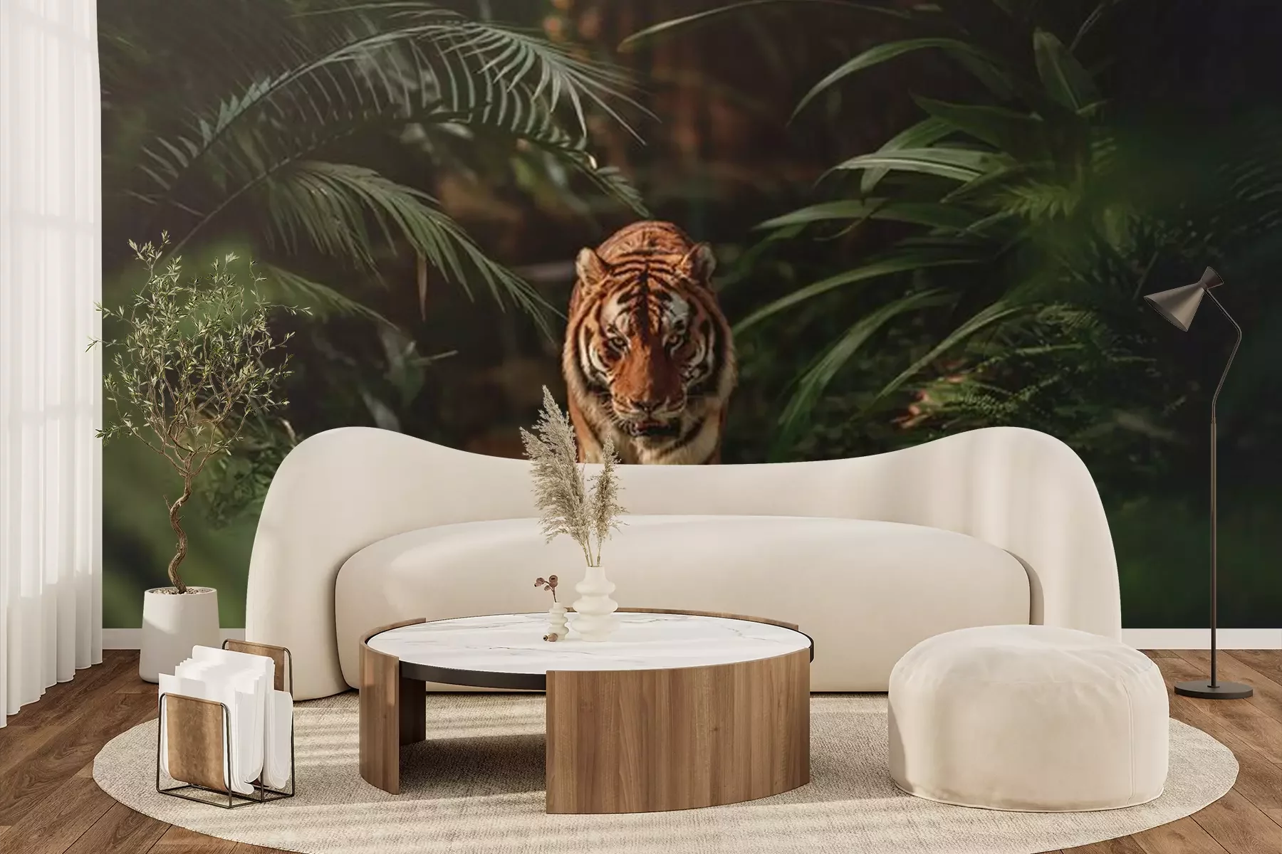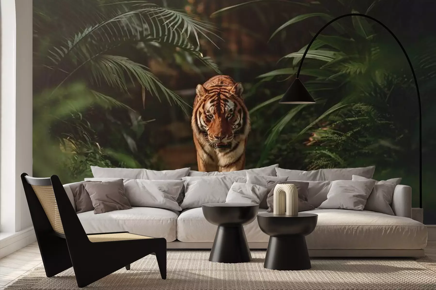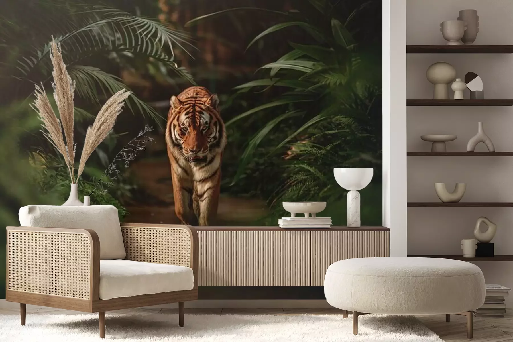Fototapete Spazierender Tiger in einem tropischen Dschungel