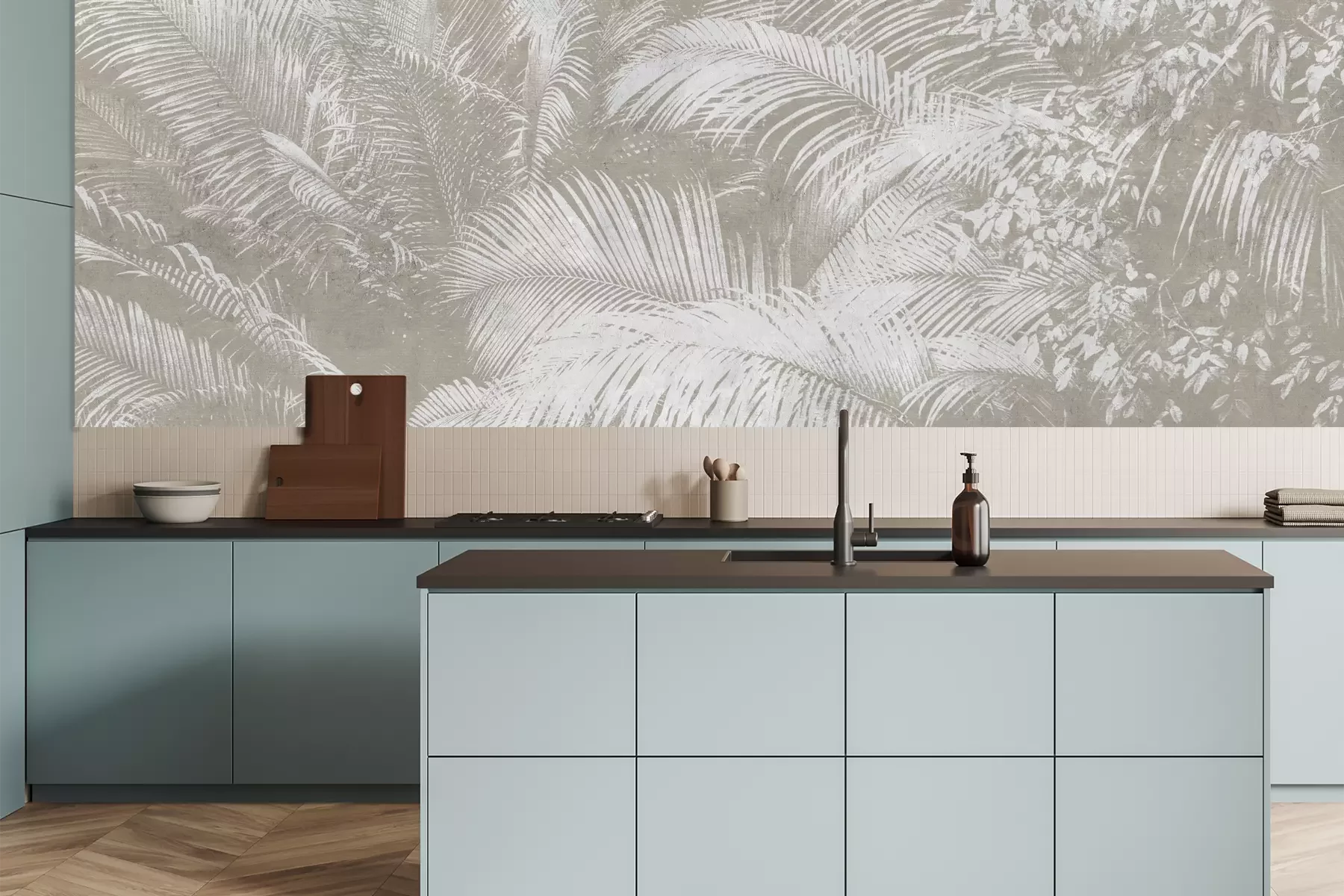 Das Material Premium+ besteht aus einer strukturierten Vinyl-Oberschicht und einem Trägermaterial (Vlies) mit einer Grammatur von 255 g/m², das kleine Unebenheiten der Wand zuverlässig kaschiert. Die feine Sandstruktur verleiht der Oberfläche eine luxuriöse Haptik, während das halbmatte Finish die Tiefe der Farben betont. Das Material ist dampfdurchlässig – so kann diese Fototapete auch in Küchen und Badezimmern eingesetzt werden. Die maximale Breite einer Tapetenbahn beträgt 100 cm. Bei größeren Abmessungen besteht die Fototapete aus mehreren gleich großen Bahnen. Der Kleber wird direkt auf die Wand aufgetragen, und die Fototapete wird auf Stoß angebracht, was für einen ästhetischen Effekt ohne sichtbare Fugen sorgt. Die Oberfläche ist pflegeleicht und kann bei Bedarf sanft mit einem feuchten Tuch abgewischt werden.