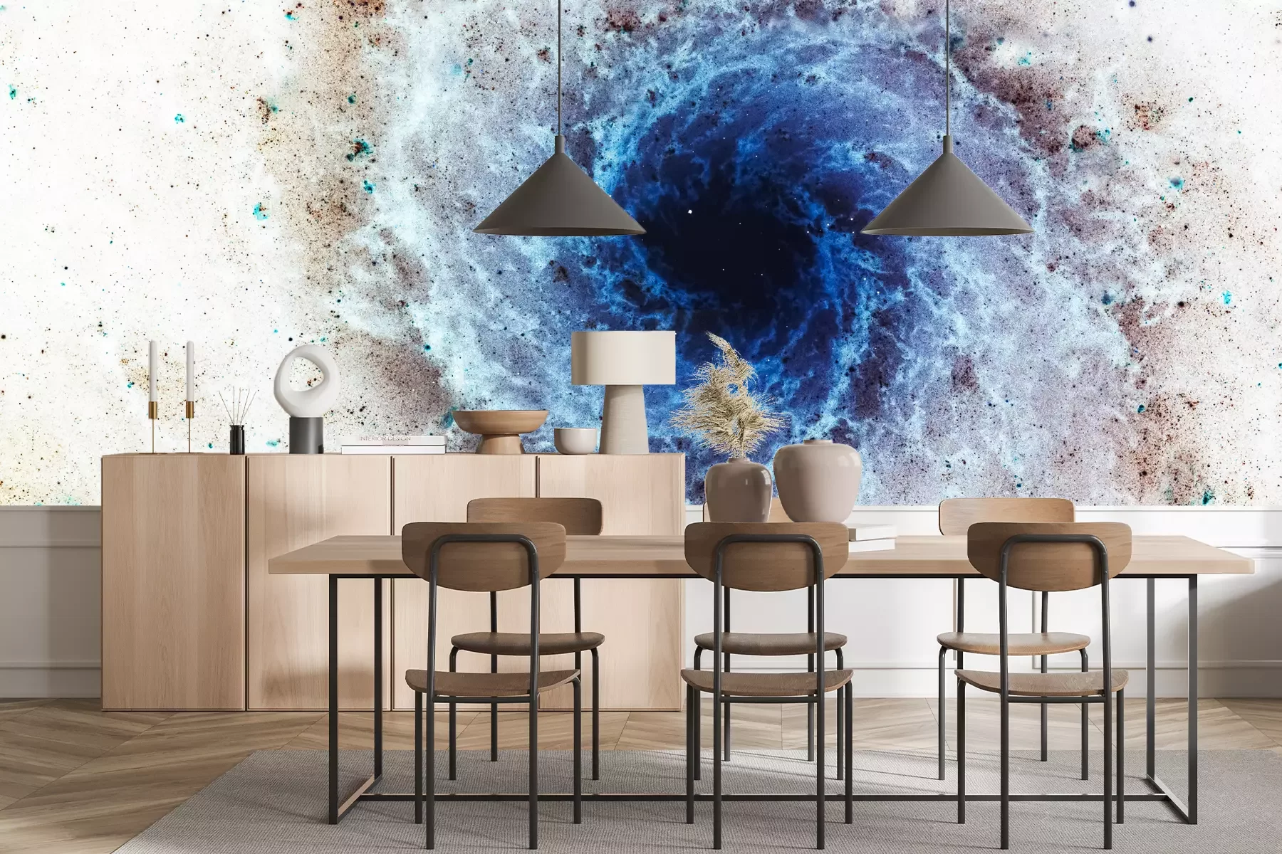 Das Material Premium+ besteht aus einer strukturierten Vinyl-Oberschicht und einem Trägermaterial (Vlies) mit einer Grammatur von 255 g/m², das kleine Unebenheiten der Wand zuverlässig kaschiert. Die feine Sandstruktur verleiht der Oberfläche eine luxuriöse Haptik, während das halbmatte Finish die Tiefe der Farben betont. Das Material ist dampfdurchlässig – so kann diese Fototapete auch in Küchen und Badezimmern eingesetzt werden. Die maximale Breite einer Tapetenbahn beträgt 100 cm. Bei größeren Abmessungen besteht die Fototapete aus mehreren gleich großen Bahnen. Der Kleber wird direkt auf die Wand aufgetragen, und die Fototapete wird auf Stoß angebracht, was für einen ästhetischen Effekt ohne sichtbare Fugen sorgt. Die Oberfläche ist pflegeleicht und kann bei Bedarf sanft mit einem feuchten Tuch abgewischt werden.
