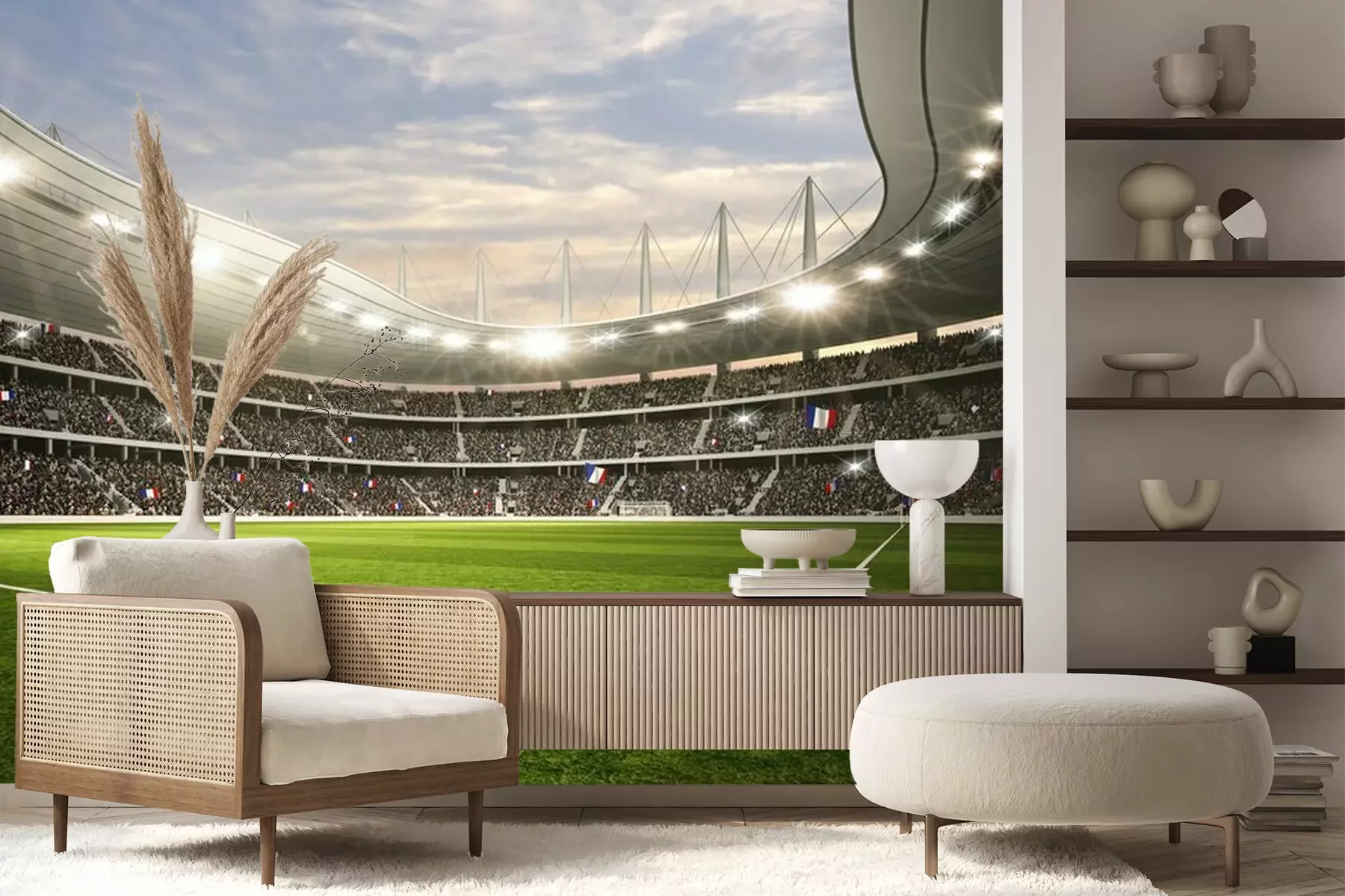Ein volles Fußballstadion unter AbendhimmelFototapete
