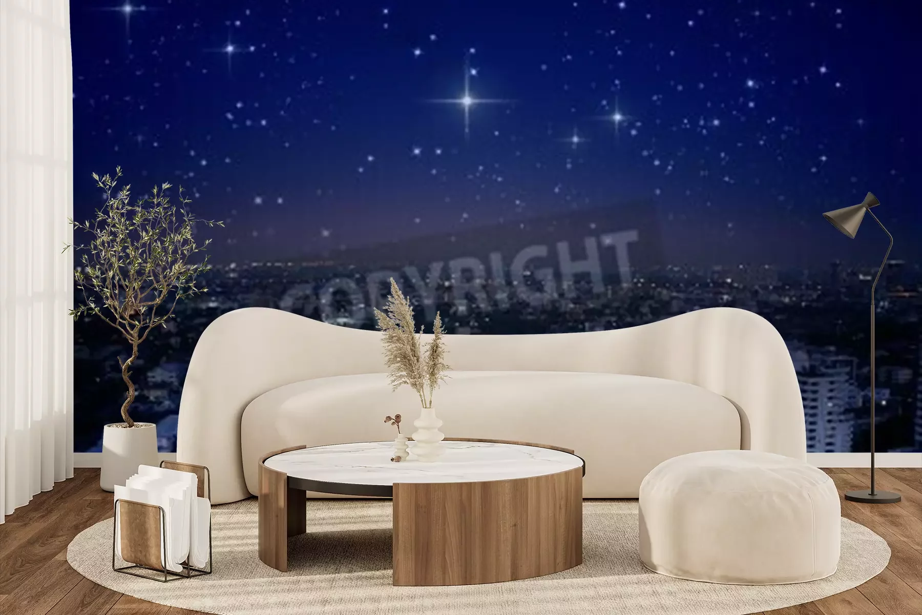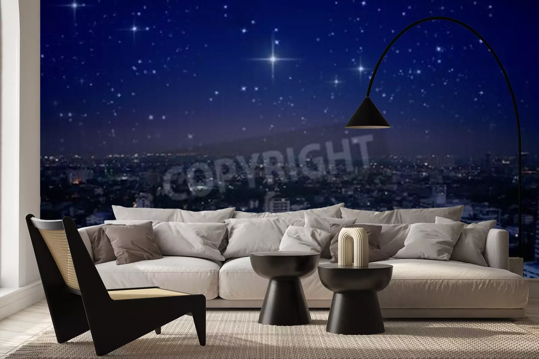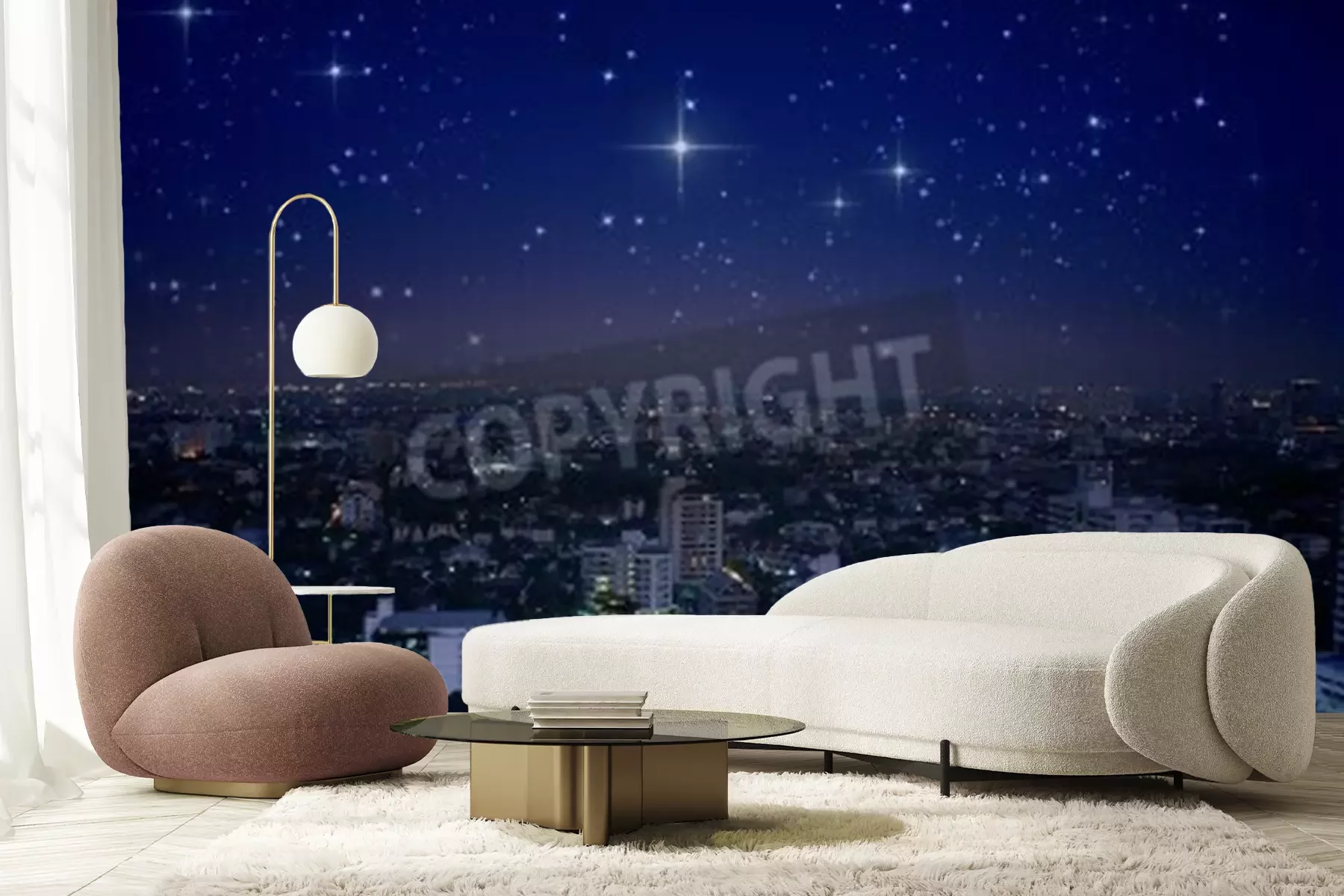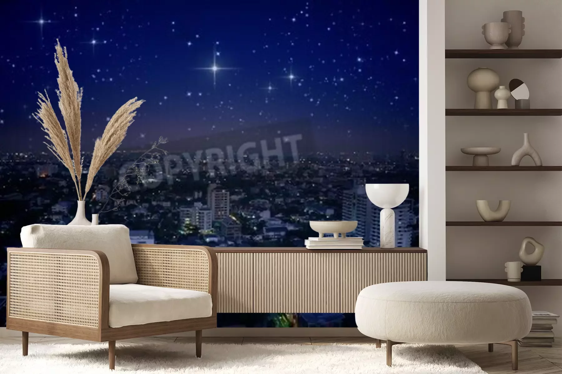 Fototapete Stadt bei Nacht und Sterne