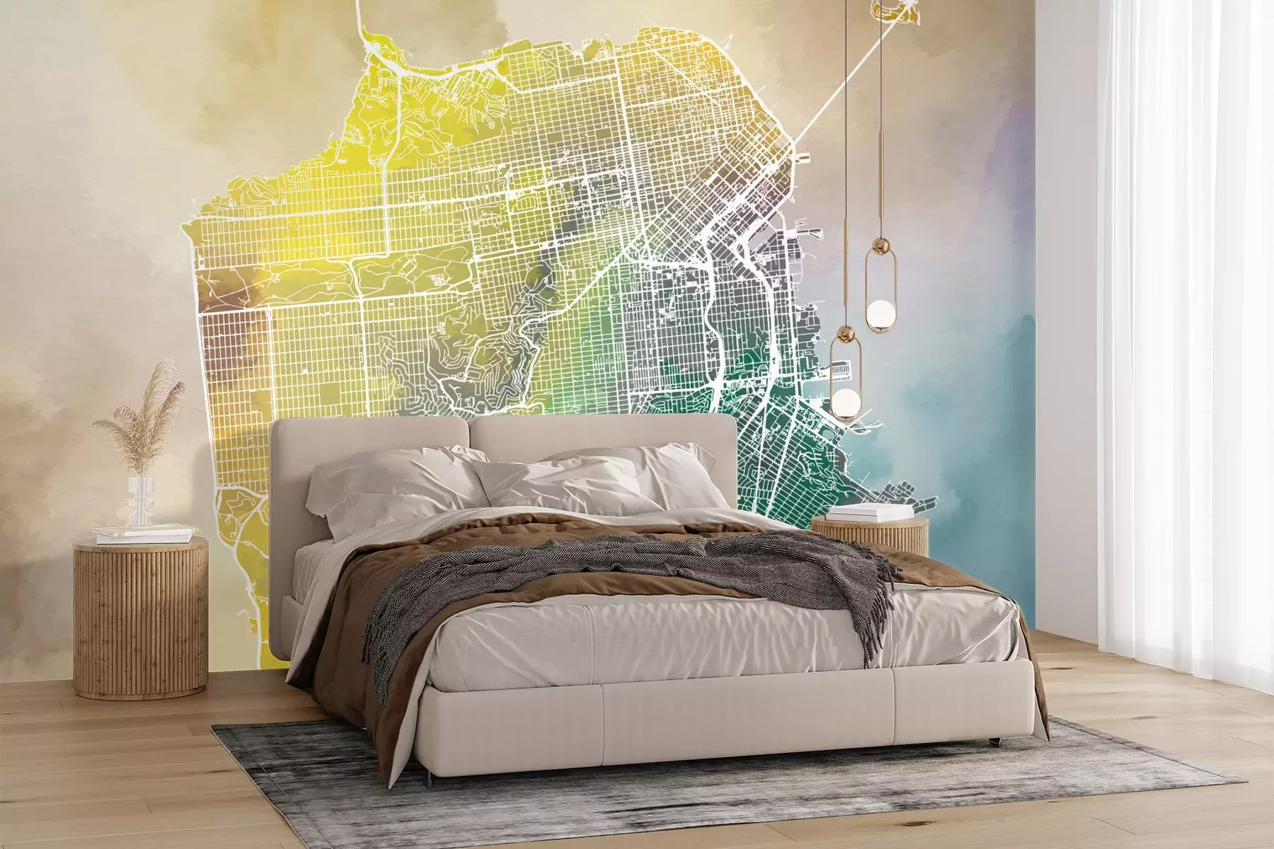 Die Fototapeten werden in Bahnen geliefert. Die Größe und die Anzahl der Bahnen, aus denen die gesamte Fototapete besteht, hängen vom gewählten Material ab. Wenn die Größe die maximale Breite des Materials überschreitet, besteht der Ausdruck aus mehreren gleich großen Bahnen.