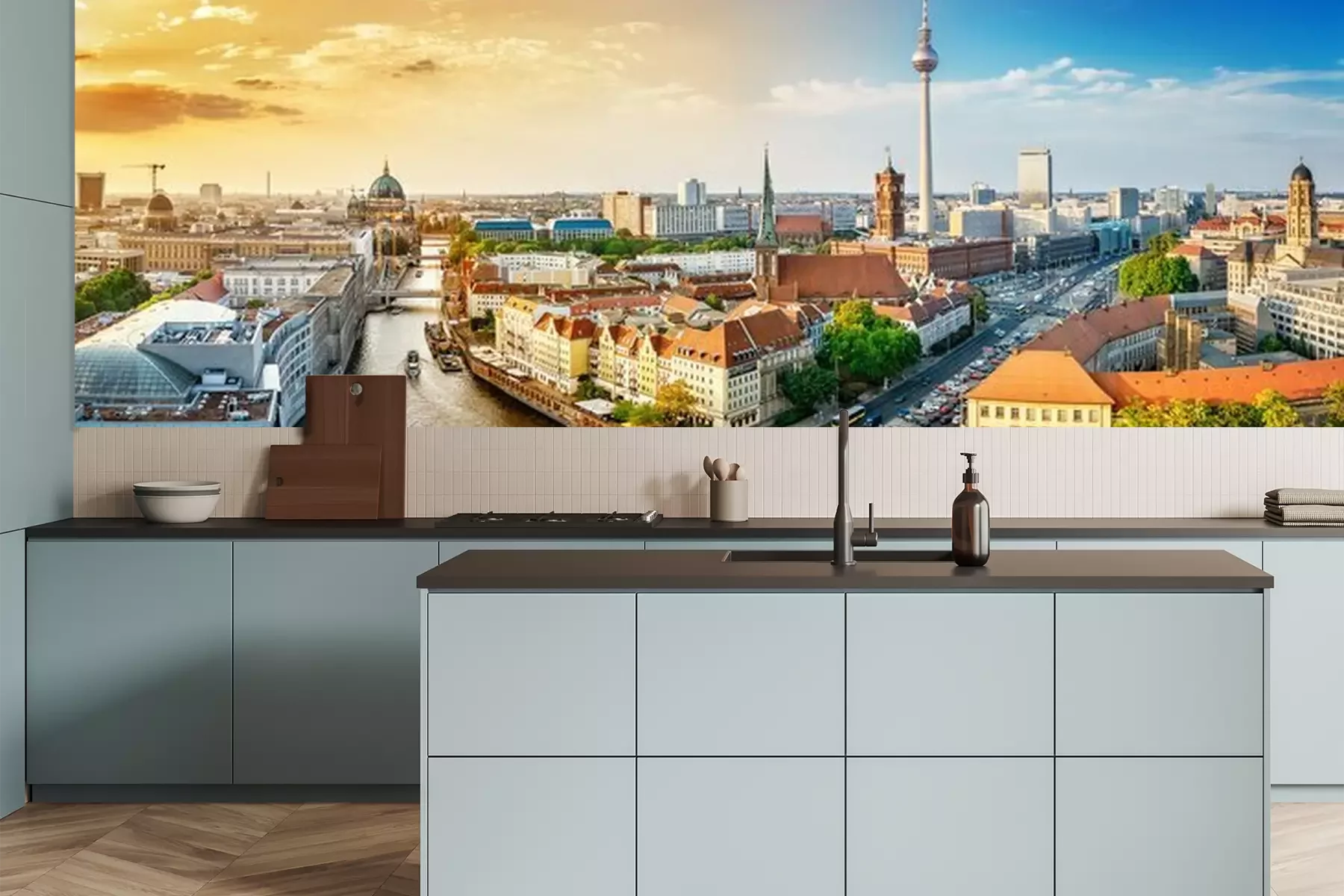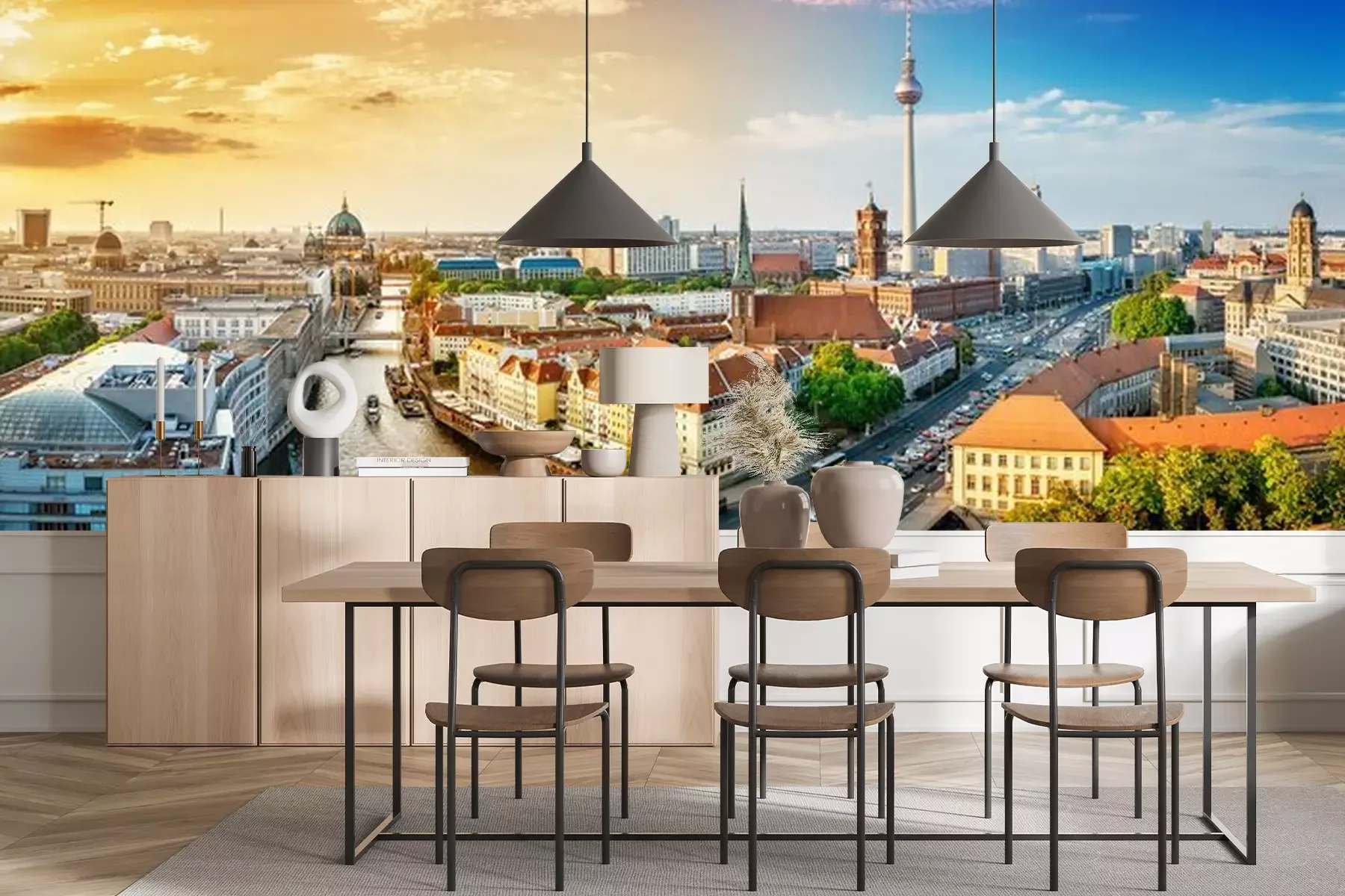 Fototapete Stadtpanorama bei Sonnenuntergang