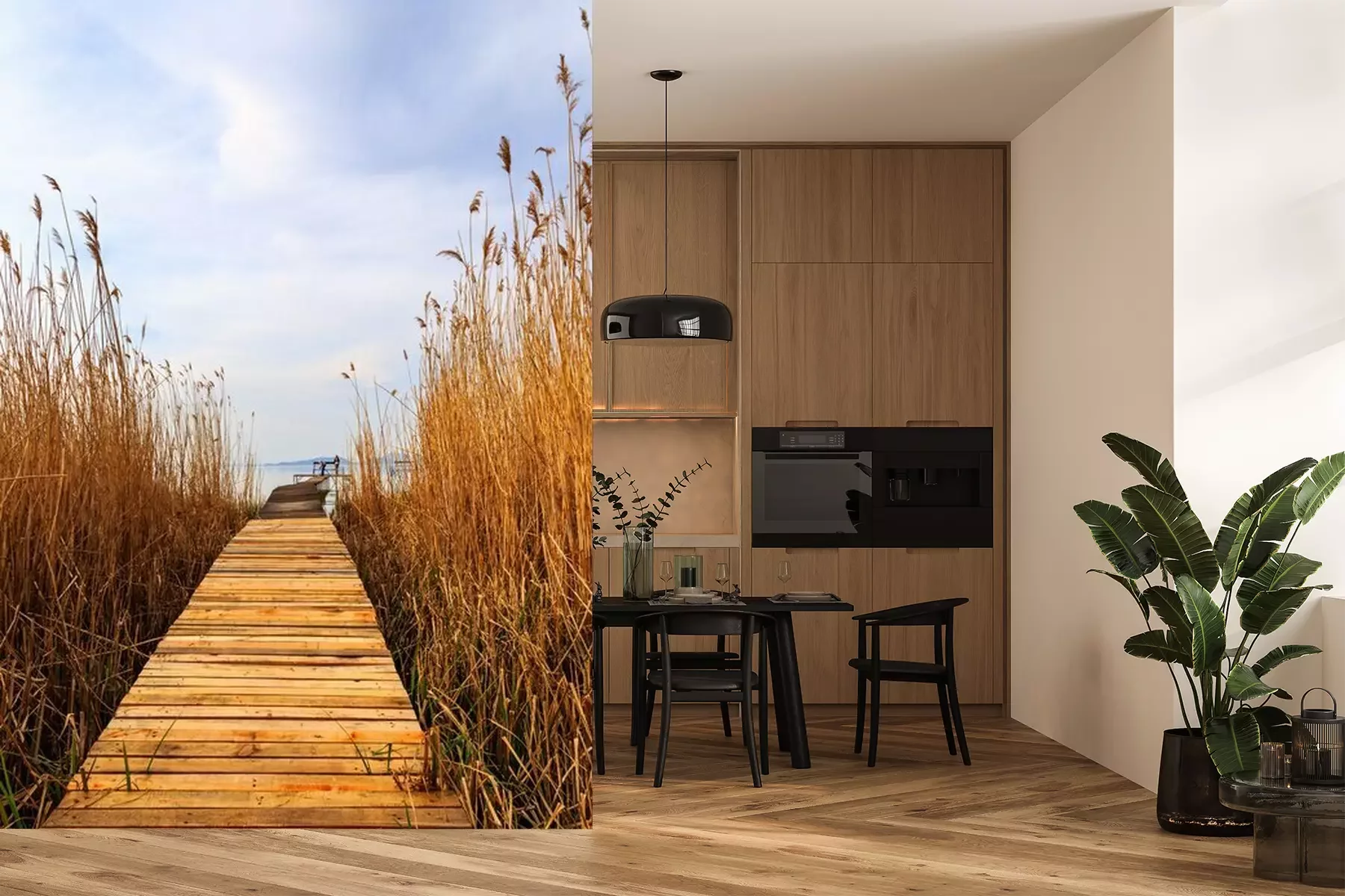 Das Material Premium besteht aus einer glatten Vinyl-Oberschicht und einem Trägermaterial (Vlies), das dehnungsfest und verformungsbeständig ist. Es ist dampfdurchlässig und atmungsaktiv. So können solche Fototapeten in Küchen und Badezimmern verwendet werden. Bei Verschmutzung kann das Material mit einem feuchten Tuch abgewischt werden. Die maximale Breite einer Tapetenbahn beträgt 95 cm oder 105 cm – je nach Verfügbarkeit. Unsere Fototapeten sind für die Tapeziermethode auf Stoß konzipiert. So erzielen Sie einen ästhetischen Effekt ohne sichtbare Fugen. Das Auftragen des Klebers auf die Wand macht die Anbringung der Fototapete schnell und bequem.