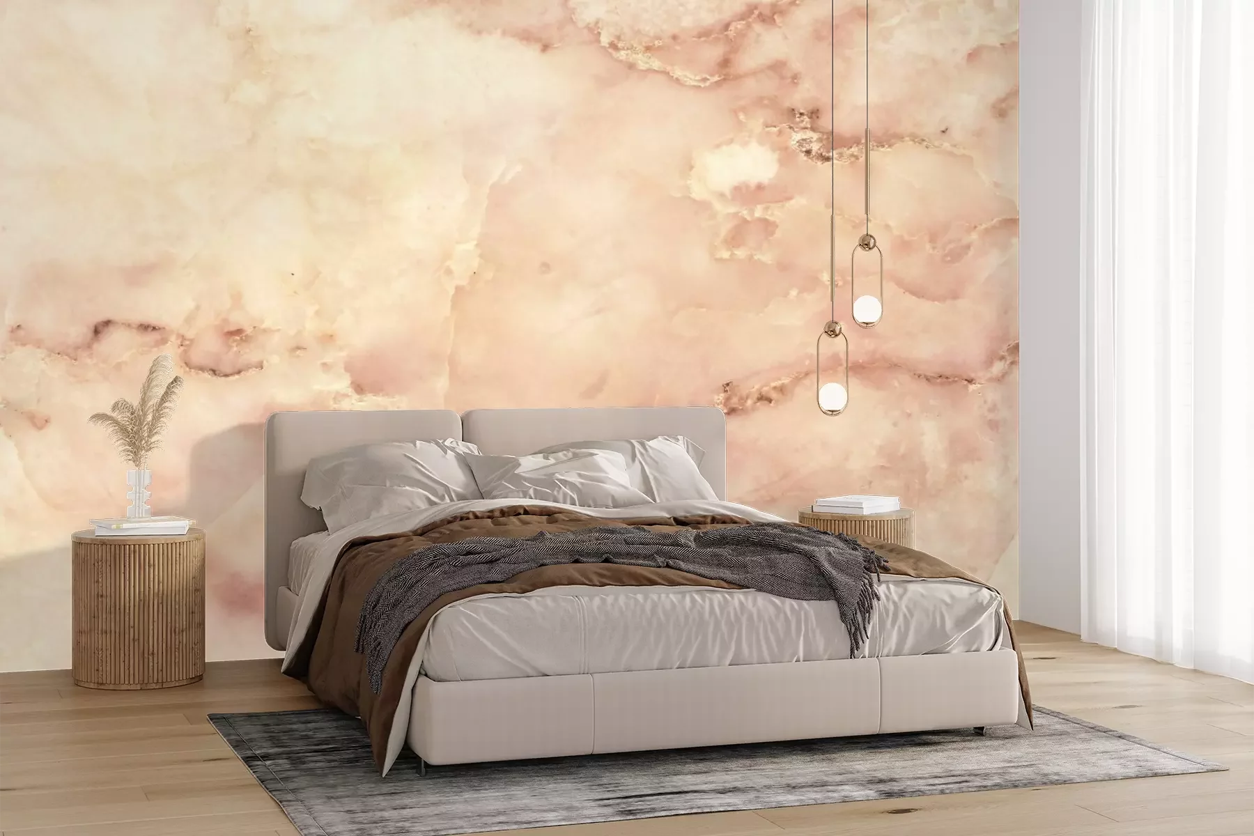 Das Material Premium+ besteht aus einer strukturierten Vinyl-Oberschicht und einem Trägermaterial (Vlies) mit einer Grammatur von 255 g/m², das kleine Unebenheiten der Wand zuverlässig kaschiert. Die feine Sandstruktur verleiht der Oberfläche eine luxuriöse Haptik, während das halbmatte Finish die Tiefe der Farben betont. Das Material ist dampfdurchlässig – so kann diese Fototapete auch in Küchen und Badezimmern eingesetzt werden. Die maximale Breite einer Tapetenbahn beträgt 100 cm. Bei größeren Abmessungen besteht die Fototapete aus mehreren gleich großen Bahnen. Der Kleber wird direkt auf die Wand aufgetragen, und die Fototapete wird auf Stoß angebracht, was für einen ästhetischen Effekt ohne sichtbare Fugen sorgt. Die Oberfläche ist pflegeleicht und kann bei Bedarf sanft mit einem feuchten Tuch abgewischt werden.