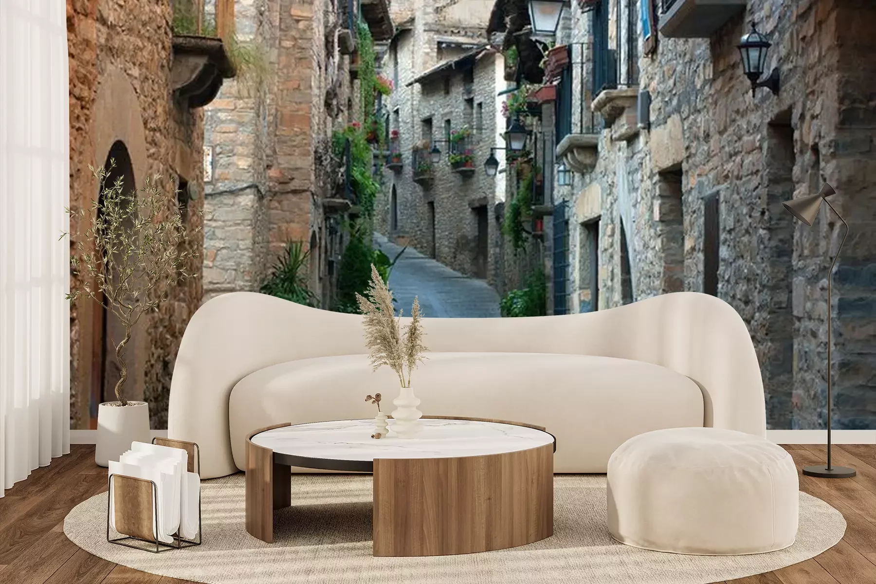 Das Material Premium+ besteht aus einer strukturierten Vinyl-Oberschicht und einem Trägermaterial (Vlies) mit einer Grammatur von 255 g/m², das kleine Unebenheiten der Wand zuverlässig kaschiert. Die feine Sandstruktur verleiht der Oberfläche eine luxuriöse Haptik, während das halbmatte Finish die Tiefe der Farben betont. Das Material ist dampfdurchlässig – so kann diese Fototapete auch in Küchen und Badezimmern eingesetzt werden. Die maximale Breite einer Tapetenbahn beträgt 100 cm. Bei größeren Abmessungen besteht die Fototapete aus mehreren gleich großen Bahnen. Der Kleber wird direkt auf die Wand aufgetragen, und die Fototapete wird auf Stoß angebracht, was für einen ästhetischen Effekt ohne sichtbare Fugen sorgt. Die Oberfläche ist pflegeleicht und kann bei Bedarf sanft mit einem feuchten Tuch abgewischt werden.