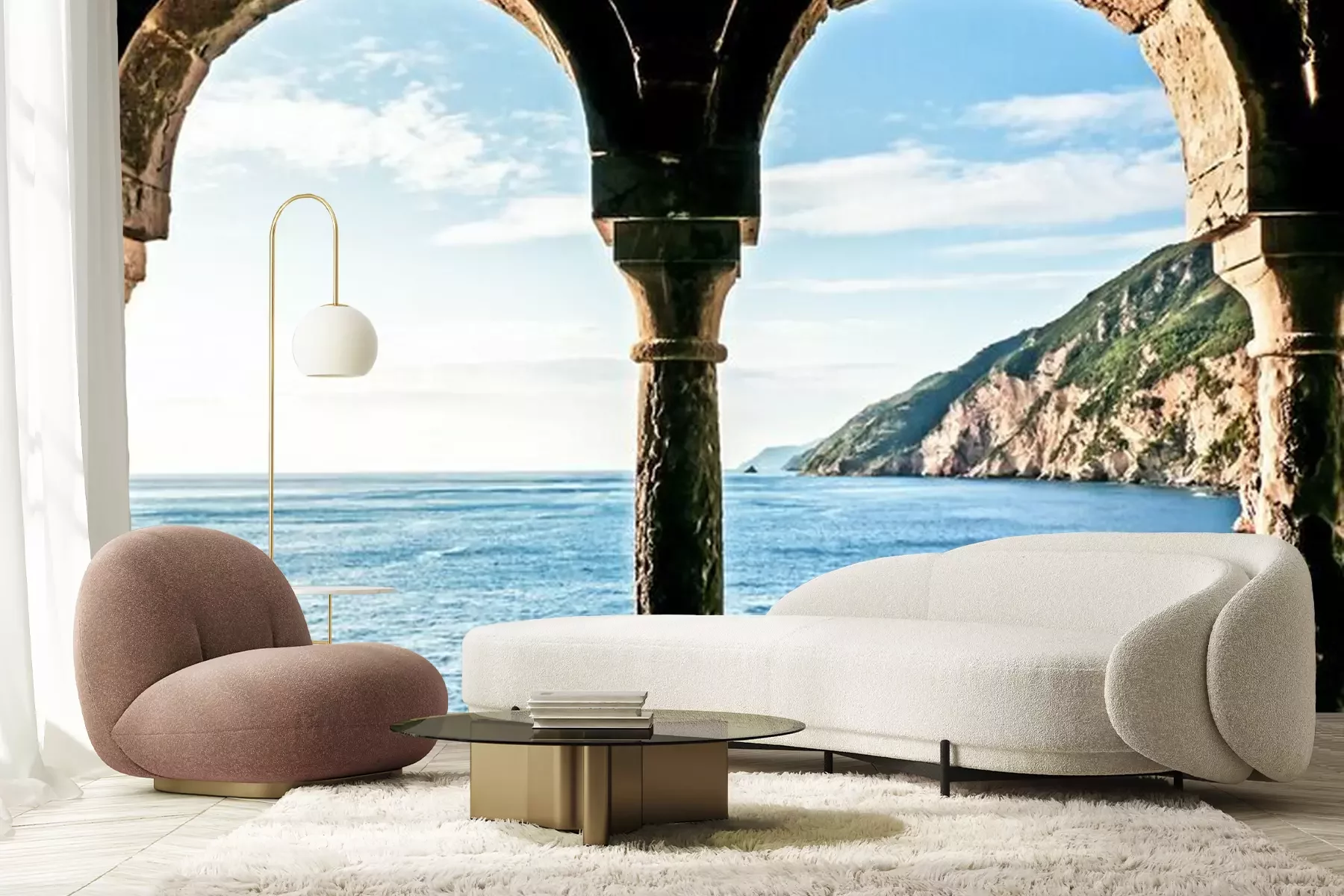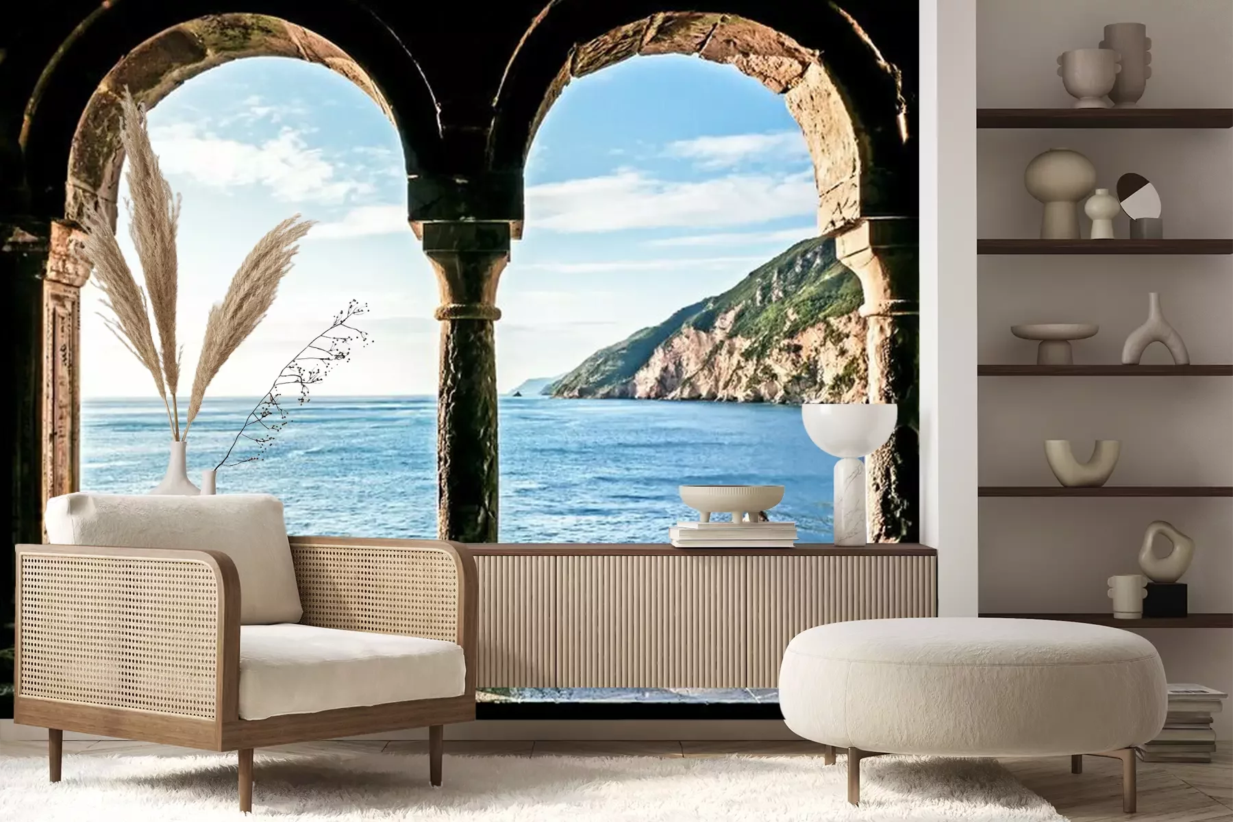 Fenster mit Säule am MeerProblemlose Lieferung durch vertrauenswürdige Spediteure