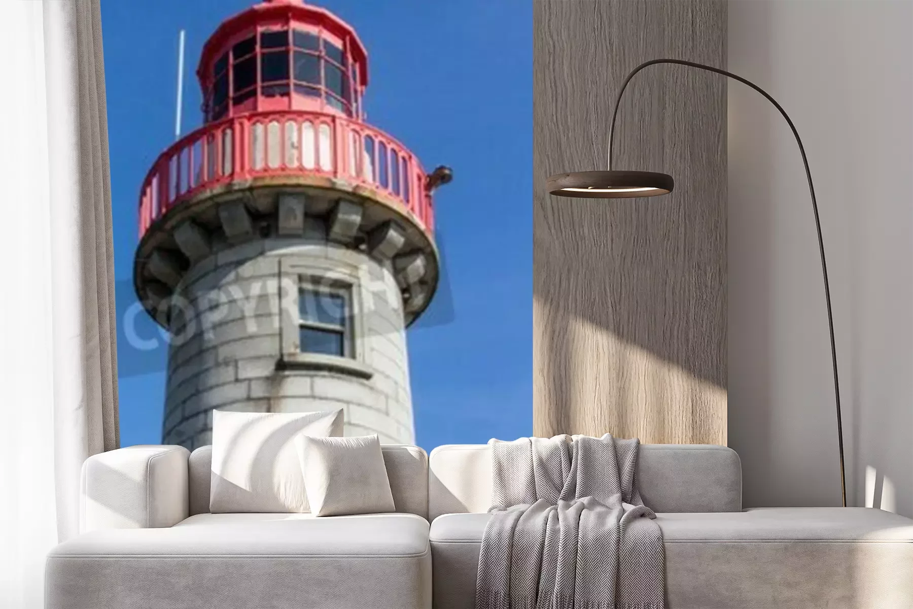 Fototapete Steiniger Leuchtturm mit rotem Schmuckrand