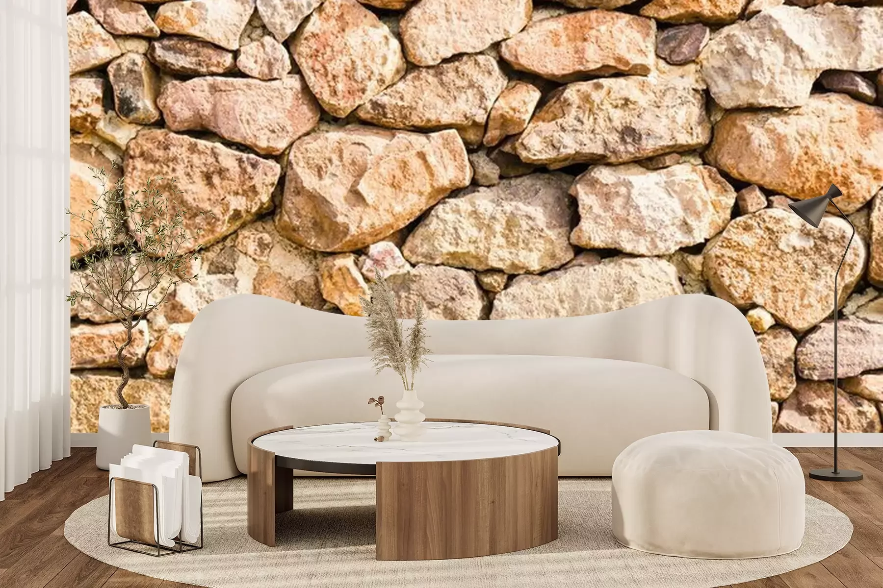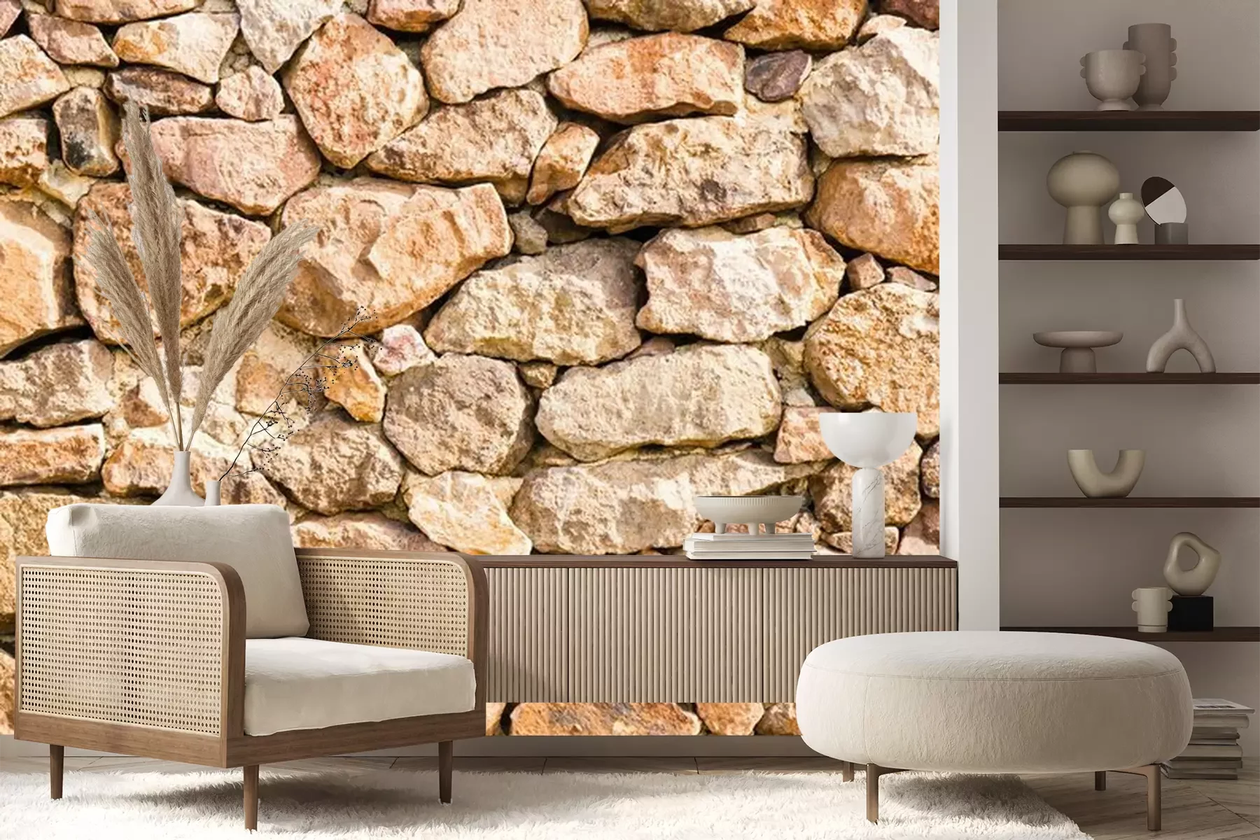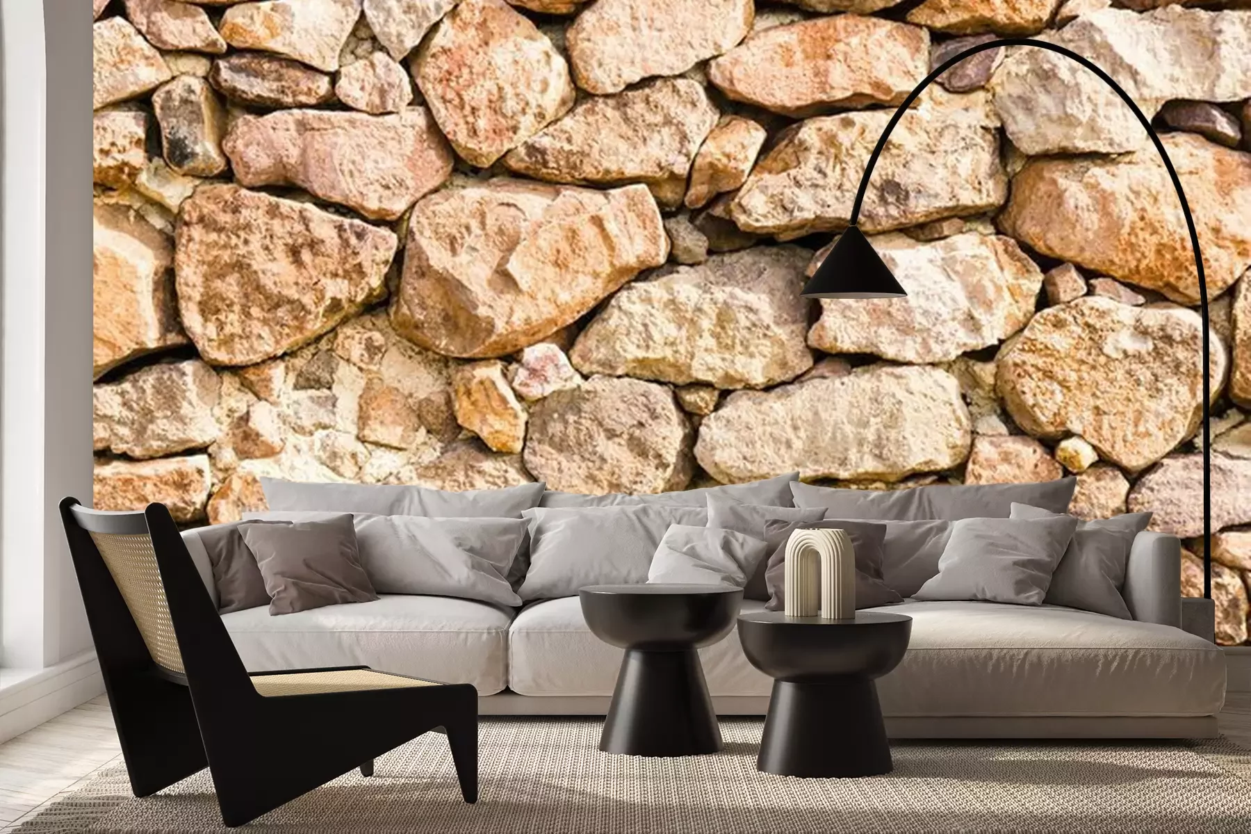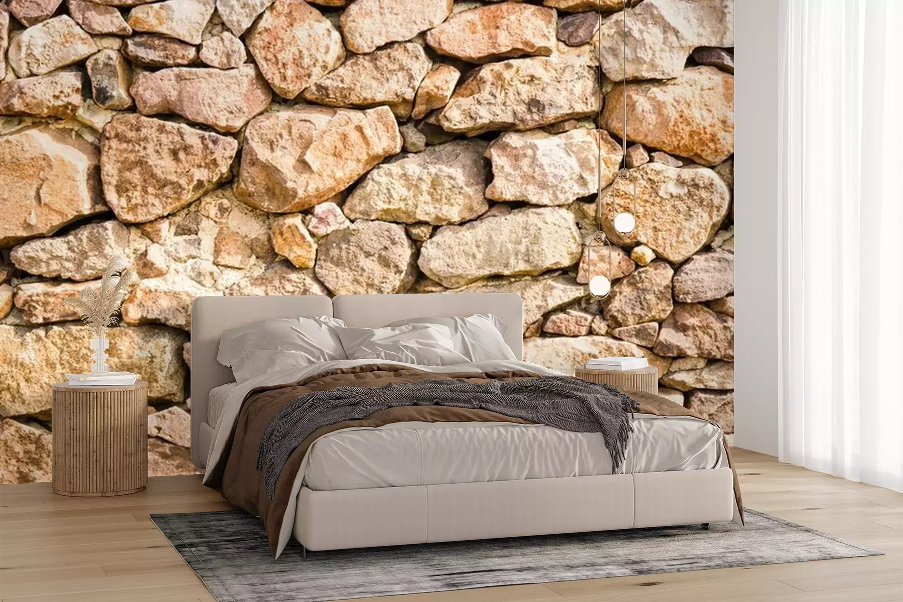 Fototapete Steinmauer aus unregelmäßigen Steinen