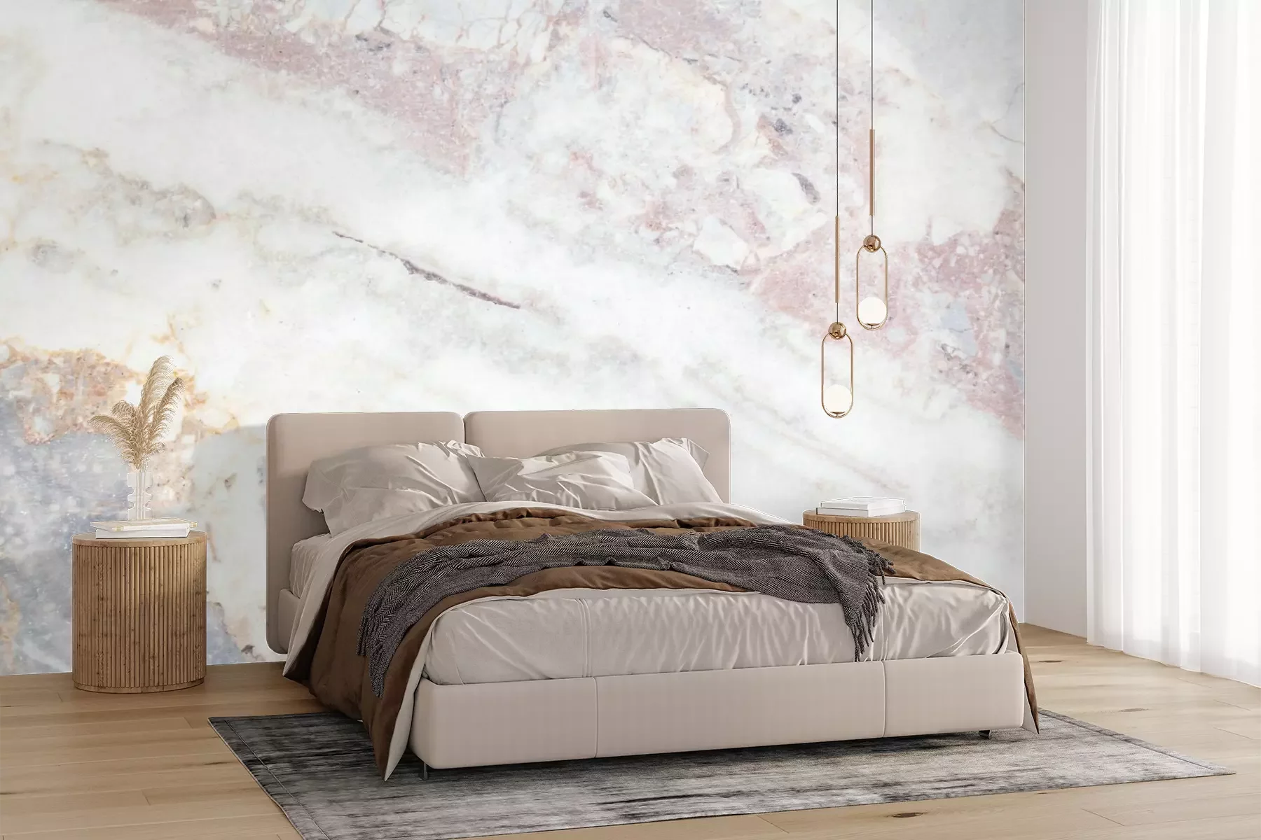 Das Material Premium+ besteht aus einer strukturierten Vinyl-Oberschicht und einem Trägermaterial (Vlies) mit einer Grammatur von 255 g/m², das kleine Unebenheiten der Wand zuverlässig kaschiert. Die feine Sandstruktur verleiht der Oberfläche eine luxuriöse Haptik, während das halbmatte Finish die Tiefe der Farben betont. Das Material ist dampfdurchlässig – so kann diese Fototapete auch in Küchen und Badezimmern eingesetzt werden. Die maximale Breite einer Tapetenbahn beträgt 100 cm. Bei größeren Abmessungen besteht die Fototapete aus mehreren gleich großen Bahnen. Der Kleber wird direkt auf die Wand aufgetragen, und die Fototapete wird auf Stoß angebracht, was für einen ästhetischen Effekt ohne sichtbare Fugen sorgt. Die Oberfläche ist pflegeleicht und kann bei Bedarf sanft mit einem feuchten Tuch abgewischt werden.