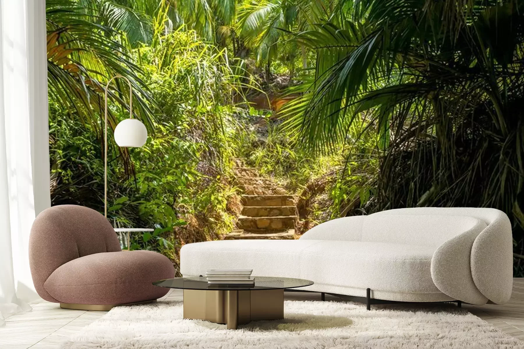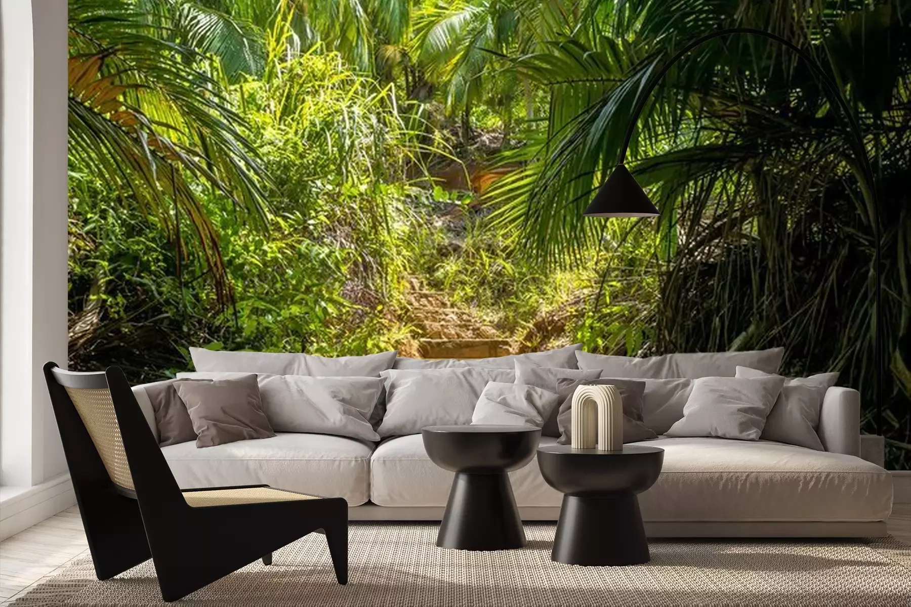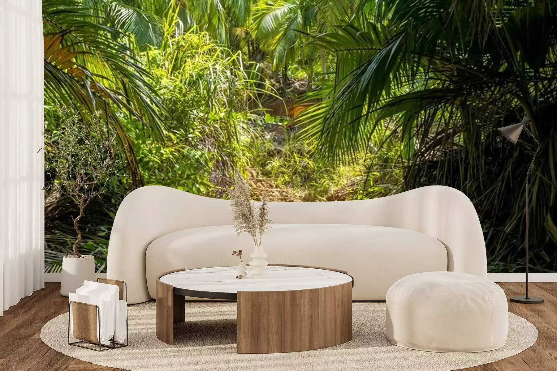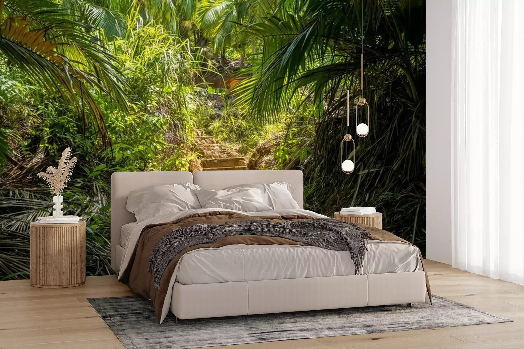 Das Material Premium+ besteht aus einer strukturierten Vinyl-Oberschicht und einem Trägermaterial (Vlies) mit einer Grammatur von 255 g/m², das kleine Unebenheiten der Wand zuverlässig kaschiert. Die feine Sandstruktur verleiht der Oberfläche eine luxuriöse Haptik, während das halbmatte Finish die Tiefe der Farben betont. Das Material ist dampfdurchlässig – so kann diese Fototapete auch in Küchen und Badezimmern eingesetzt werden. Die maximale Breite einer Tapetenbahn beträgt 100 cm. Bei größeren Abmessungen besteht die Fototapete aus mehreren gleich großen Bahnen. Der Kleber wird direkt auf die Wand aufgetragen, und die Fototapete wird auf Stoß angebracht, was für einen ästhetischen Effekt ohne sichtbare Fugen sorgt. Die Oberfläche ist pflegeleicht und kann bei Bedarf sanft mit einem feuchten Tuch abgewischt werden.