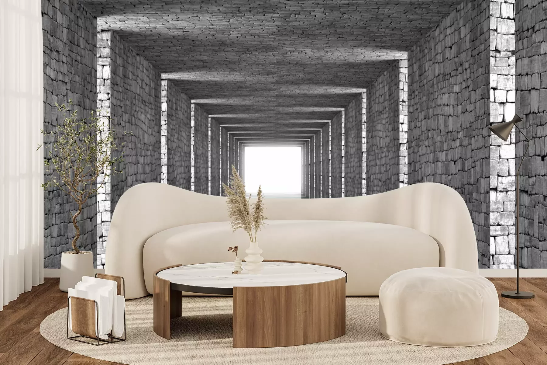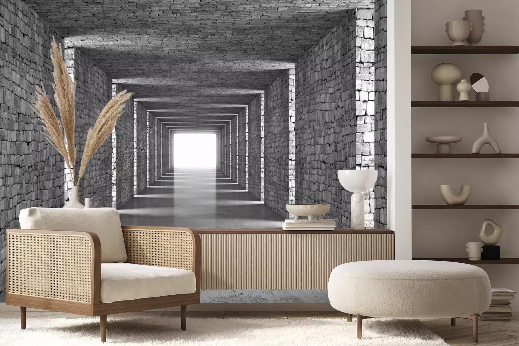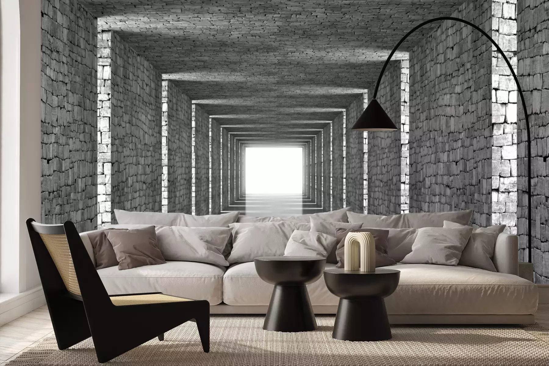 3D-grauer SteintunnelFototapete