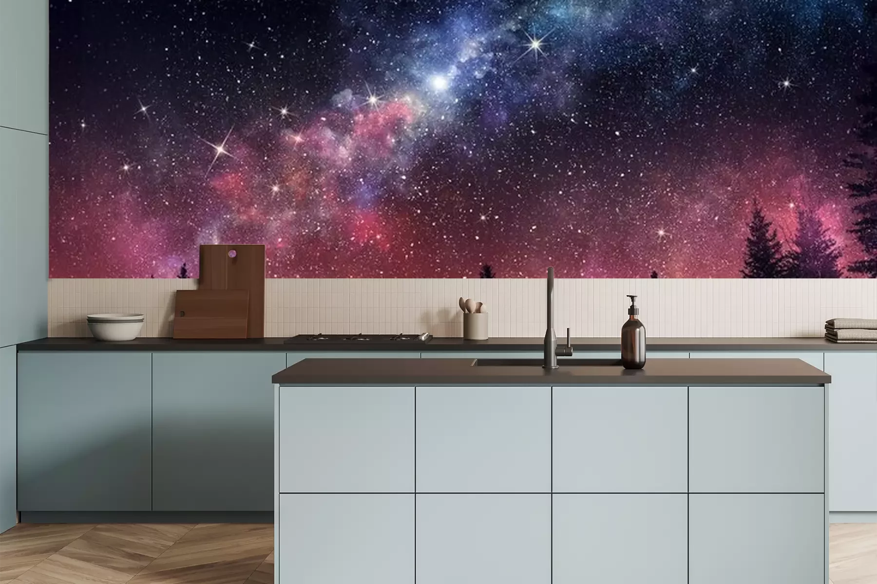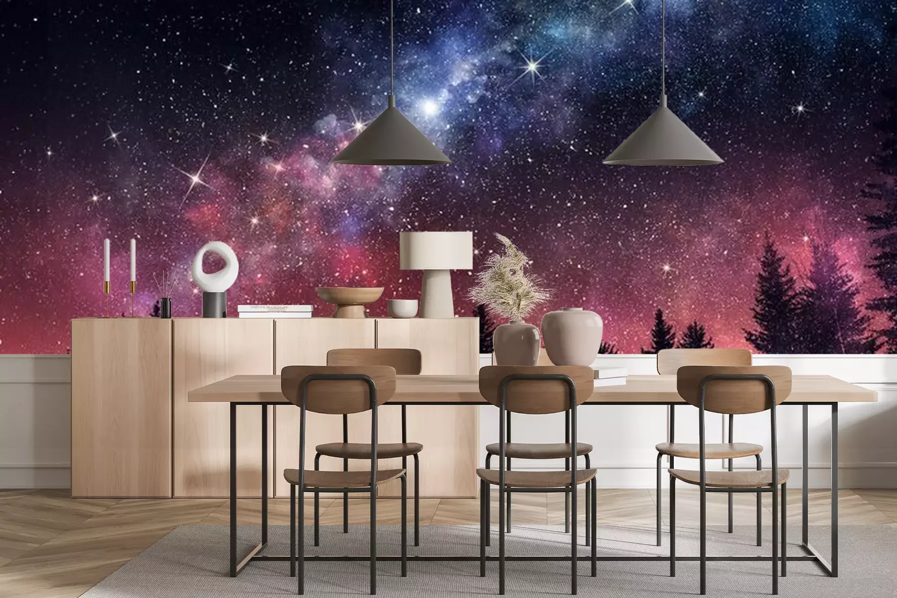 Himmel mit Mond und Sternen über einem WaldProblemlose Lieferung durch vertrauenswürdige Spediteure