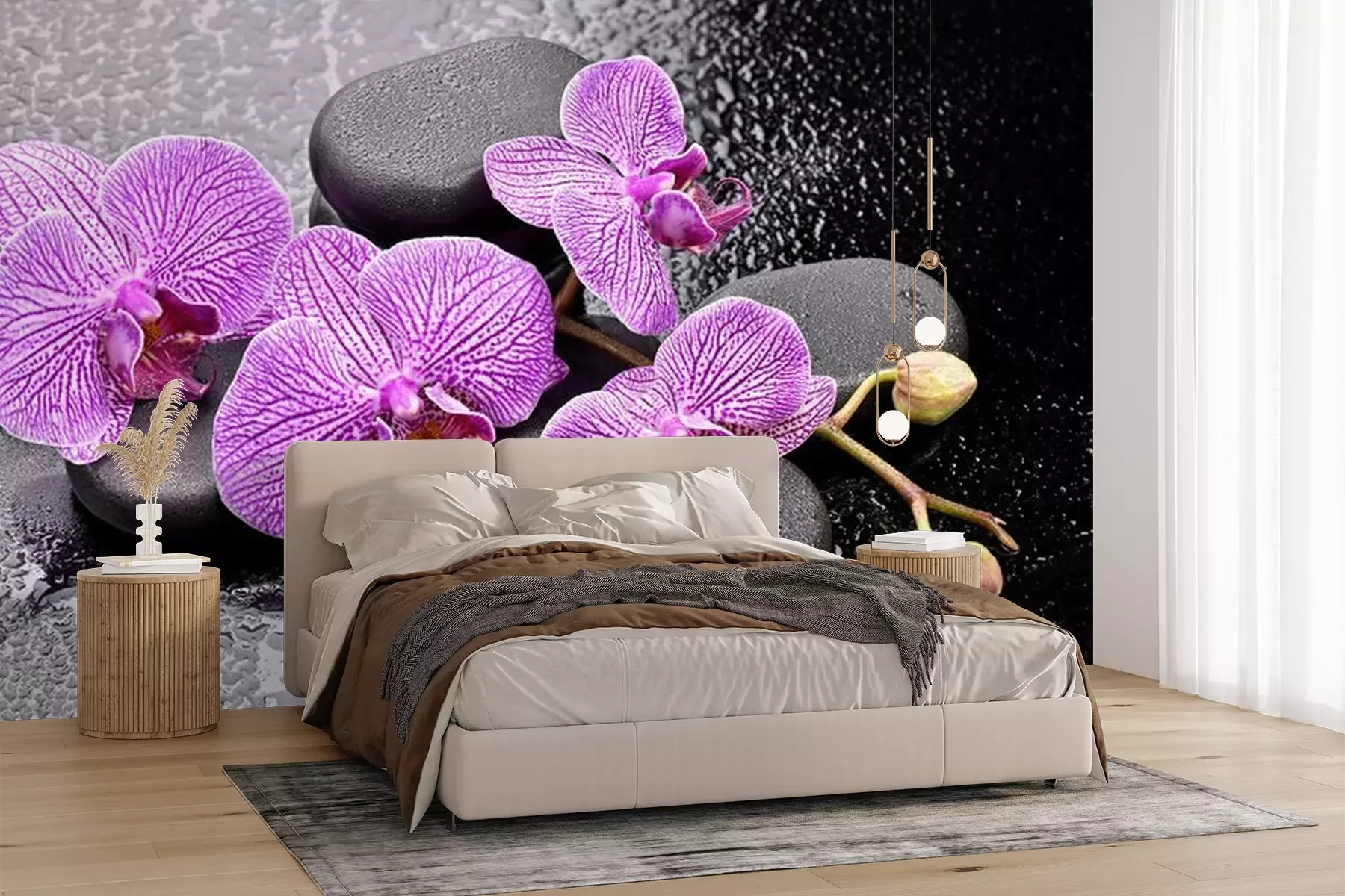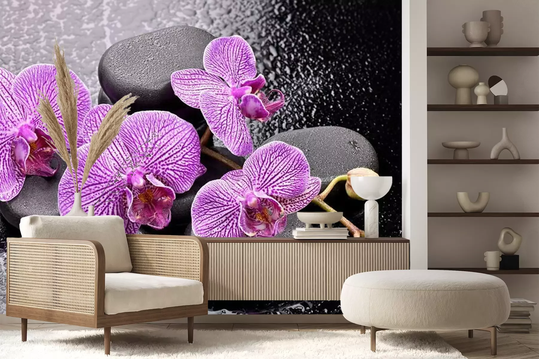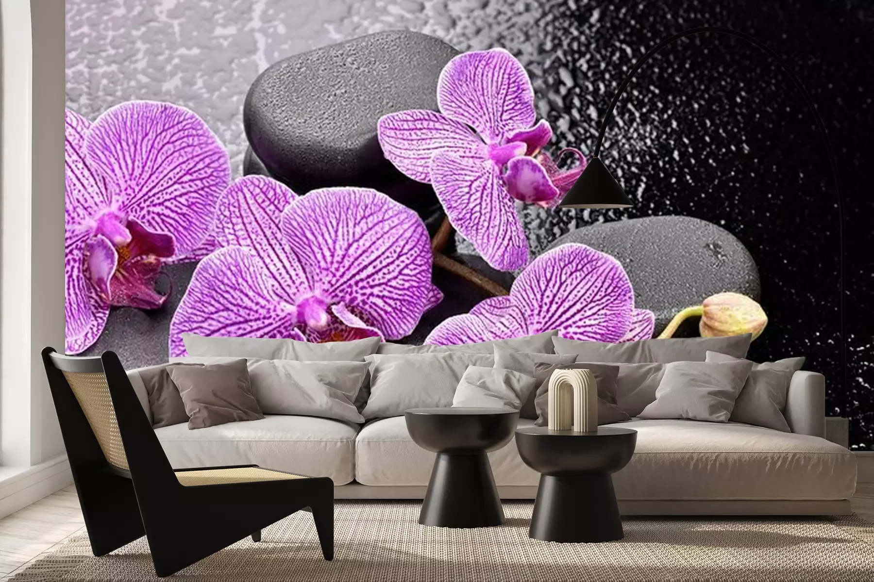 Orchideen mit BasaltsteinenProblemlose Lieferung durch vertrauenswürdige Spediteure