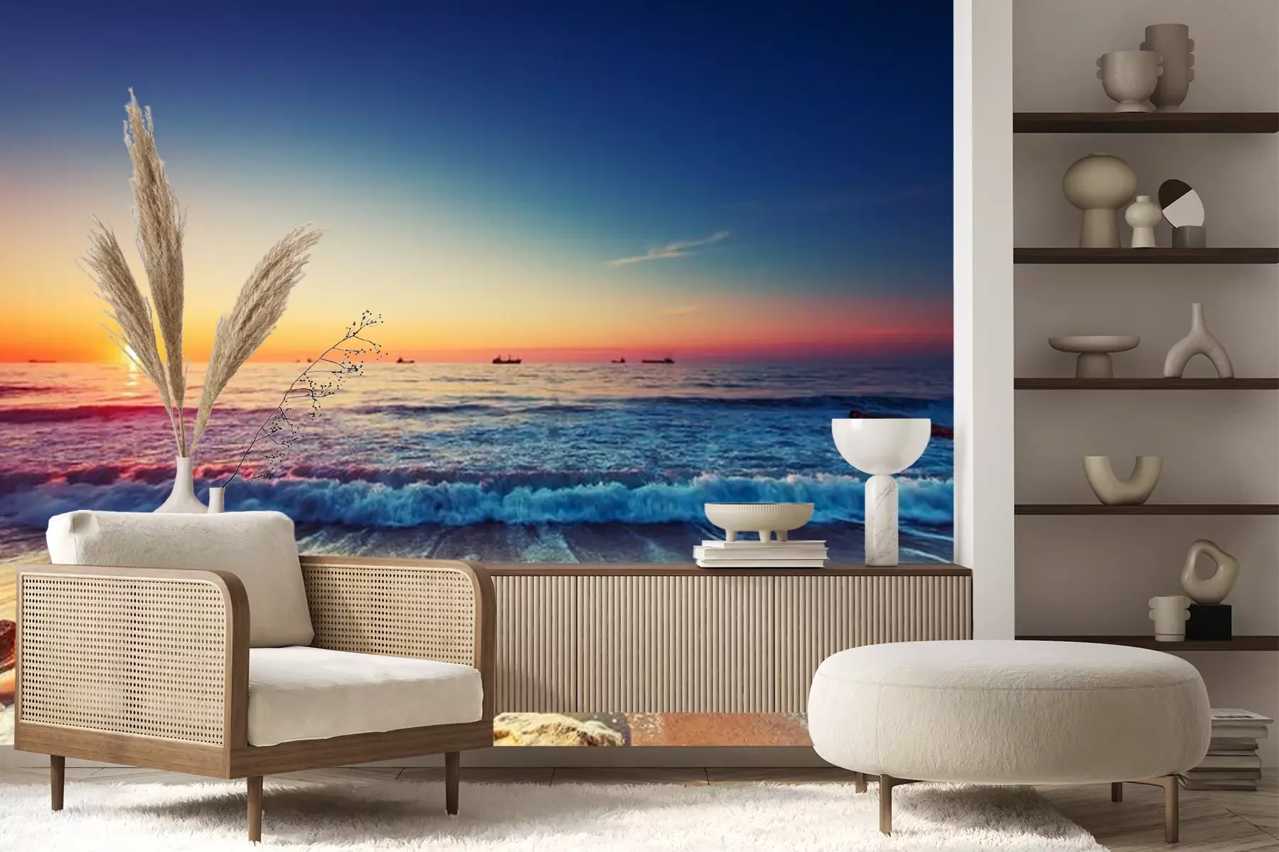 Sonnenuntergang über Ozean und WellenFototapete