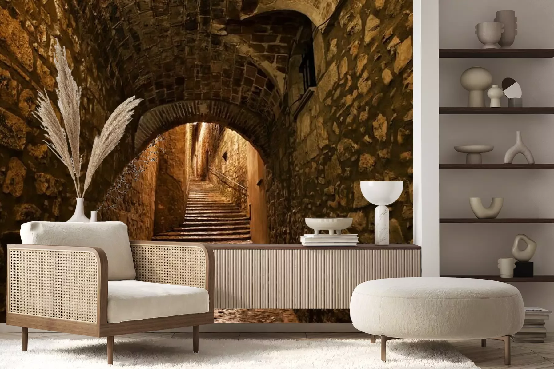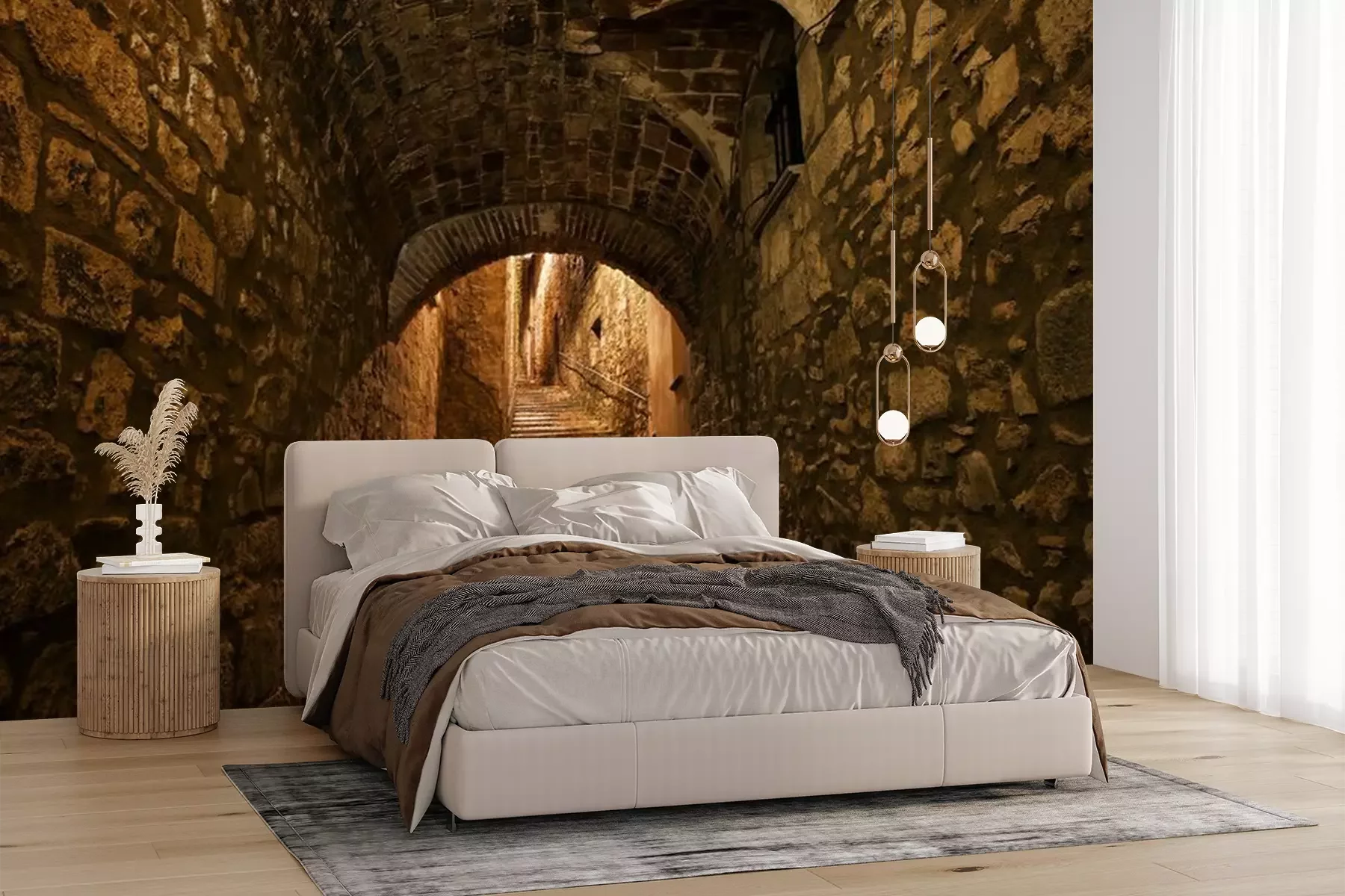Fototapete Straße in der Altstadt von Girona bei Nacht in Katalonien, Spanien