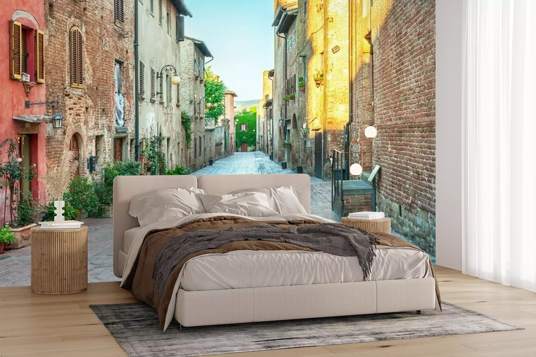 Die Fototapeten werden in Bahnen geliefert. Die Größe und die Anzahl der Bahnen, aus denen die gesamte Fototapete besteht, hängen vom gewählten Material ab. Wenn die Größe die maximale Breite des Materials überschreitet, besteht der Ausdruck aus mehreren gleich großen Bahnen.