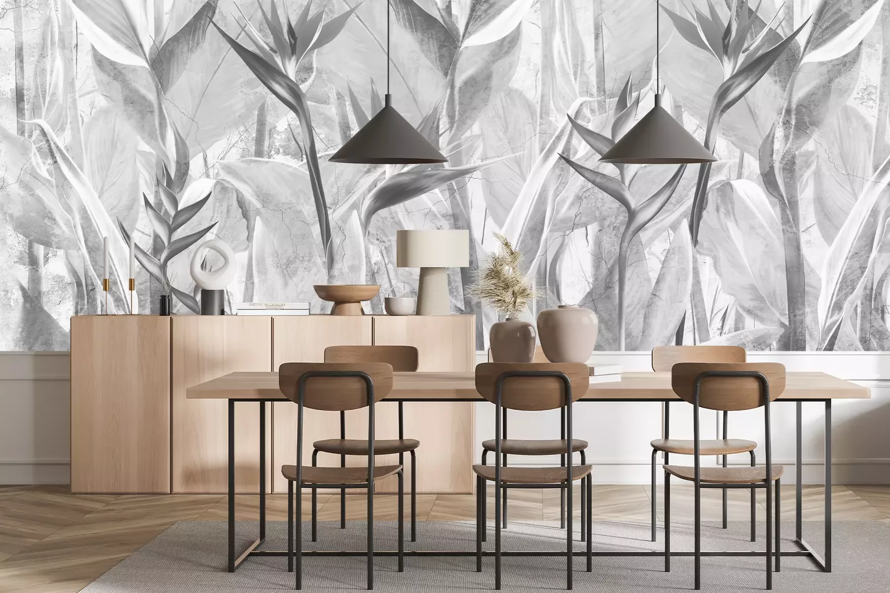 Das Material Standard ist ein hochwertiges Latexmaterial mit einer glatten, matten Oberfläche. Durch den Einsatz von HP-Latex-Drucktechnologie sind die Farben satt, langlebig und UV-beständig. So bleibt das Muster über Jahre hinweg makellos schön. Die verschmutzte Oberfläche dieses Materials kann sanft mit einem trockenen Tuch abgewischt werden. Die maximale Breite einer einzelnen Bahn beträgt 95 cm oder 105 cm – je nach Breite der bestellten Fototapete. Bei Fototapeten mit größeren Abmessungen besteht der Ausdruck aus mehreren gleich großen Tapetenbahnen. Die Fototapete wird auf Stoß angebracht, wodurch die Fugen nahezu unsichtbar sind.