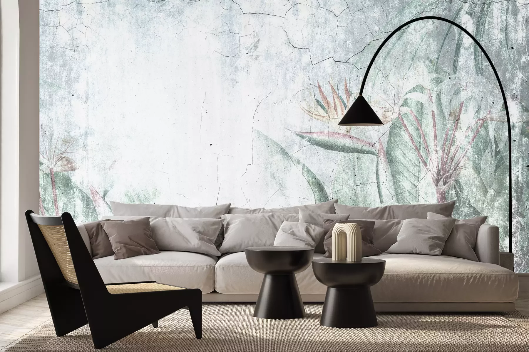 Das Material Premium+ besteht aus einer strukturierten Vinyl-Oberschicht und einem Trägermaterial (Vlies) mit einer Grammatur von 255 g/m², das kleine Unebenheiten der Wand zuverlässig kaschiert. Die feine Sandstruktur verleiht der Oberfläche eine luxuriöse Haptik, während das halbmatte Finish die Tiefe der Farben betont. Das Material ist dampfdurchlässig – so kann diese Fototapete auch in Küchen und Badezimmern eingesetzt werden. Die maximale Breite einer Tapetenbahn beträgt 100 cm. Bei größeren Abmessungen besteht die Fototapete aus mehreren gleich großen Bahnen. Der Kleber wird direkt auf die Wand aufgetragen, und die Fototapete wird auf Stoß angebracht, was für einen ästhetischen Effekt ohne sichtbare Fugen sorgt. Die Oberfläche ist pflegeleicht und kann bei Bedarf sanft mit einem feuchten Tuch abgewischt werden.