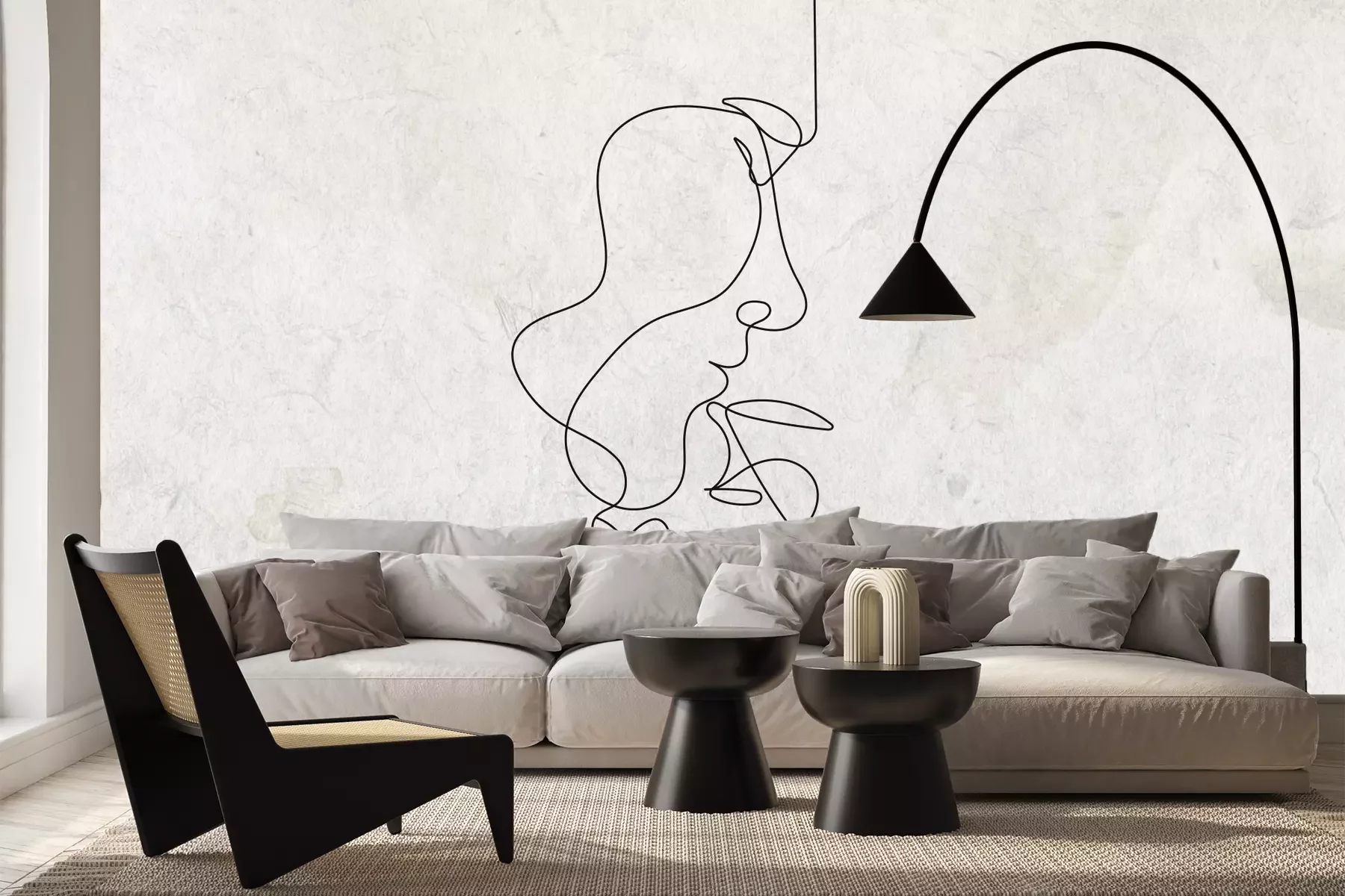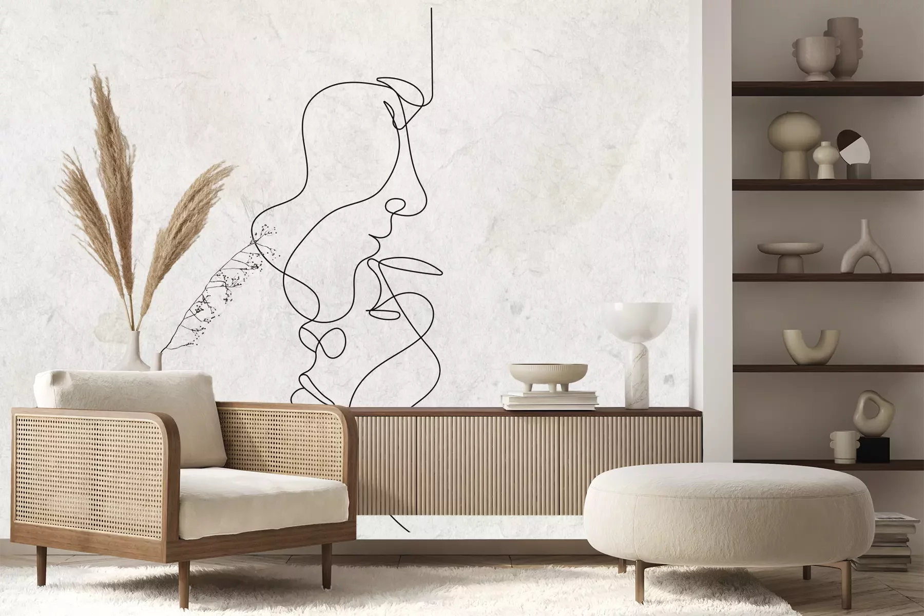 Das Material Premium+ besteht aus einer strukturierten Vinyl-Oberschicht und einem Trägermaterial (Vlies) mit einer Grammatur von 255 g/m², das kleine Unebenheiten der Wand zuverlässig kaschiert. Die feine Sandstruktur verleiht der Oberfläche eine luxuriöse Haptik, während das halbmatte Finish die Tiefe der Farben betont. Das Material ist dampfdurchlässig – so kann diese Fototapete auch in Küchen und Badezimmern eingesetzt werden. Die maximale Breite einer Tapetenbahn beträgt 100 cm. Bei größeren Abmessungen besteht die Fototapete aus mehreren gleich großen Bahnen. Der Kleber wird direkt auf die Wand aufgetragen, und die Fototapete wird auf Stoß angebracht, was für einen ästhetischen Effekt ohne sichtbare Fugen sorgt. Die Oberfläche ist pflegeleicht und kann bei Bedarf sanft mit einem feuchten Tuch abgewischt werden.