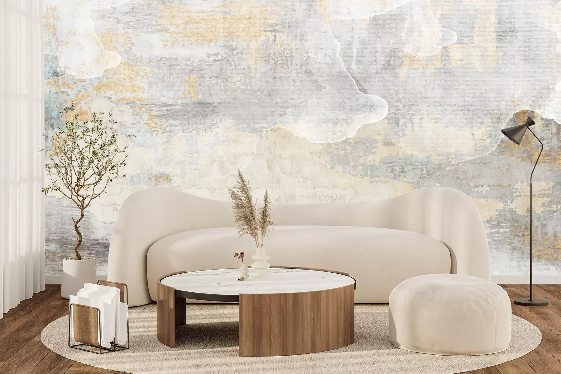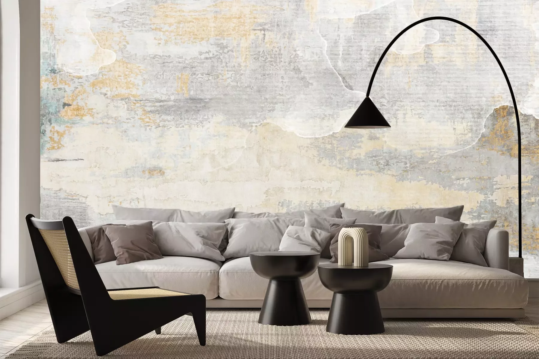 Das Material Premium+ besteht aus einer strukturierten Vinyl-Oberschicht und einem Trägermaterial (Vlies) mit einer Grammatur von 255 g/m², das kleine Unebenheiten der Wand zuverlässig kaschiert. Die feine Sandstruktur verleiht der Oberfläche eine luxuriöse Haptik, während das halbmatte Finish die Tiefe der Farben betont. Das Material ist dampfdurchlässig – so kann diese Fototapete auch in Küchen und Badezimmern eingesetzt werden. Die maximale Breite einer Tapetenbahn beträgt 100 cm. Bei größeren Abmessungen besteht die Fototapete aus mehreren gleich großen Bahnen. Der Kleber wird direkt auf die Wand aufgetragen, und die Fototapete wird auf Stoß angebracht, was für einen ästhetischen Effekt ohne sichtbare Fugen sorgt. Die Oberfläche ist pflegeleicht und kann bei Bedarf sanft mit einem feuchten Tuch abgewischt werden.