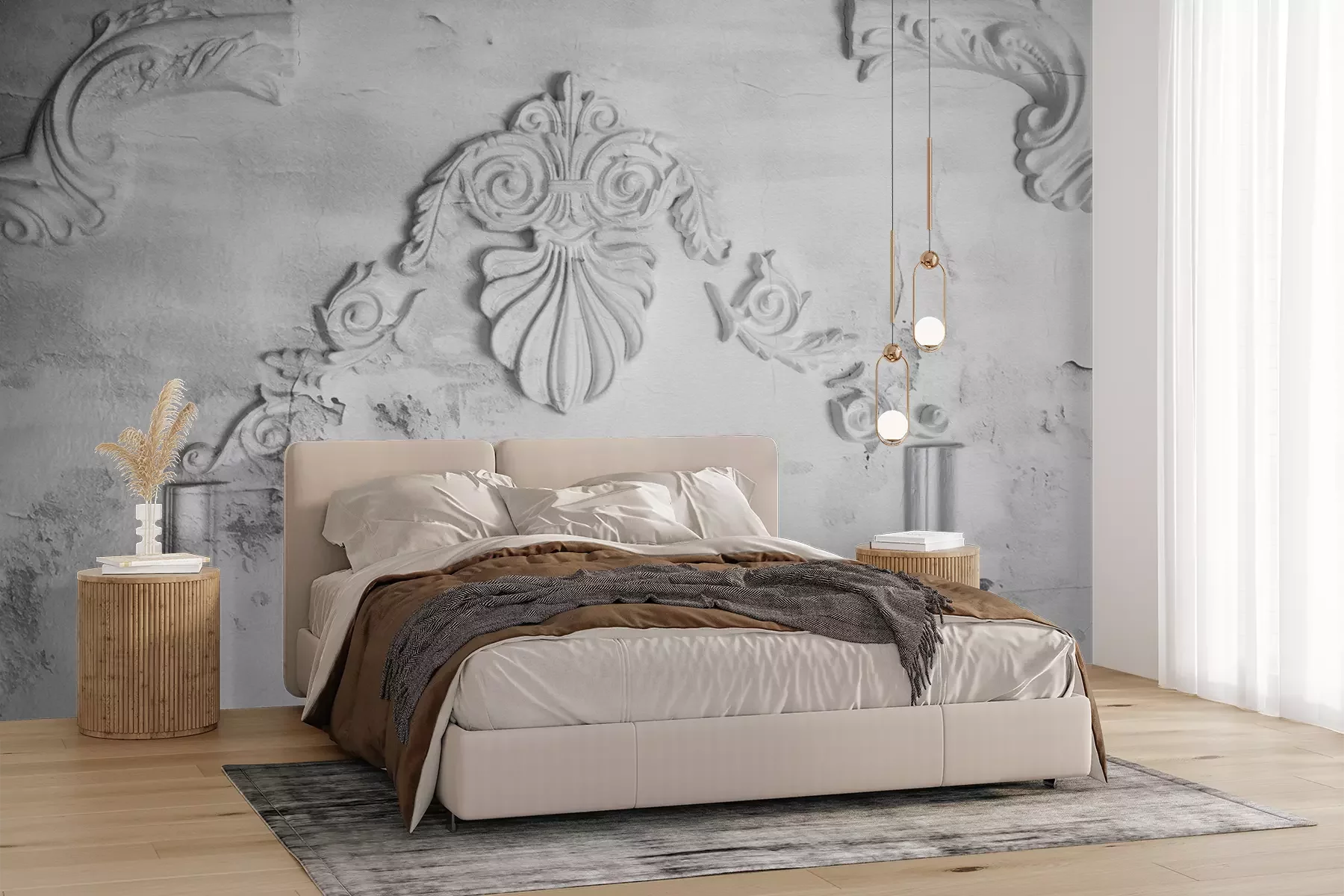 Die Fototapeten werden in Bahnen geliefert. Die Größe und die Anzahl der Bahnen, aus denen die gesamte Fototapete besteht, hängen vom gewählten Material ab. Wenn die Größe die maximale Breite des Materials überschreitet, besteht der Ausdruck aus mehreren gleich großen Bahnen.