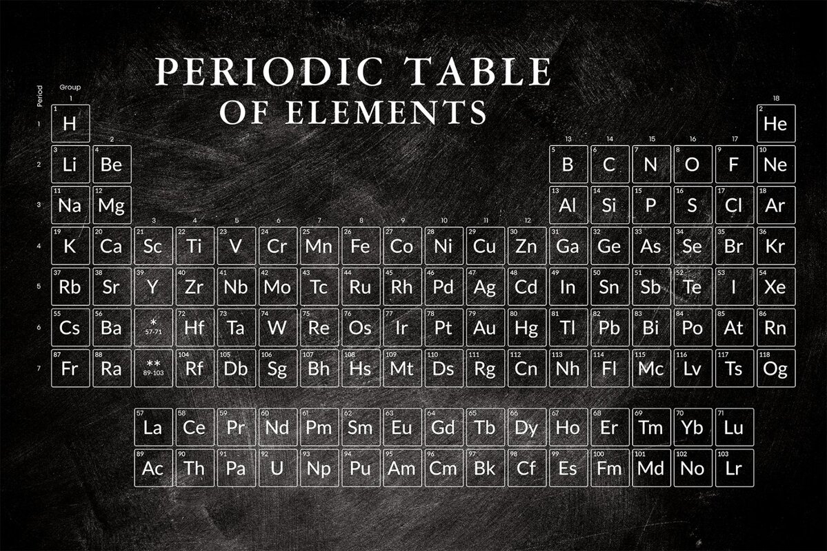 Fototapete: Tabelle der Elemente auf schwarzem Hintergrund