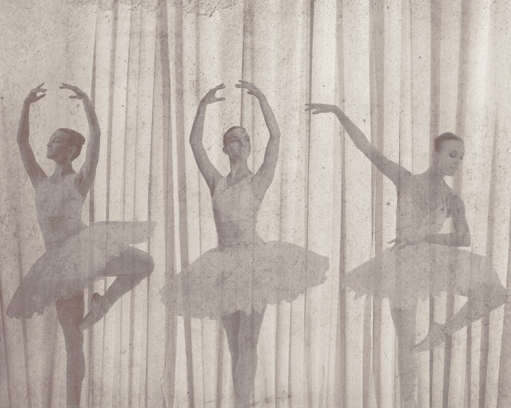 Fototapete: Tanzende Ballerinas vor einem Hintergrund in Betonoptik