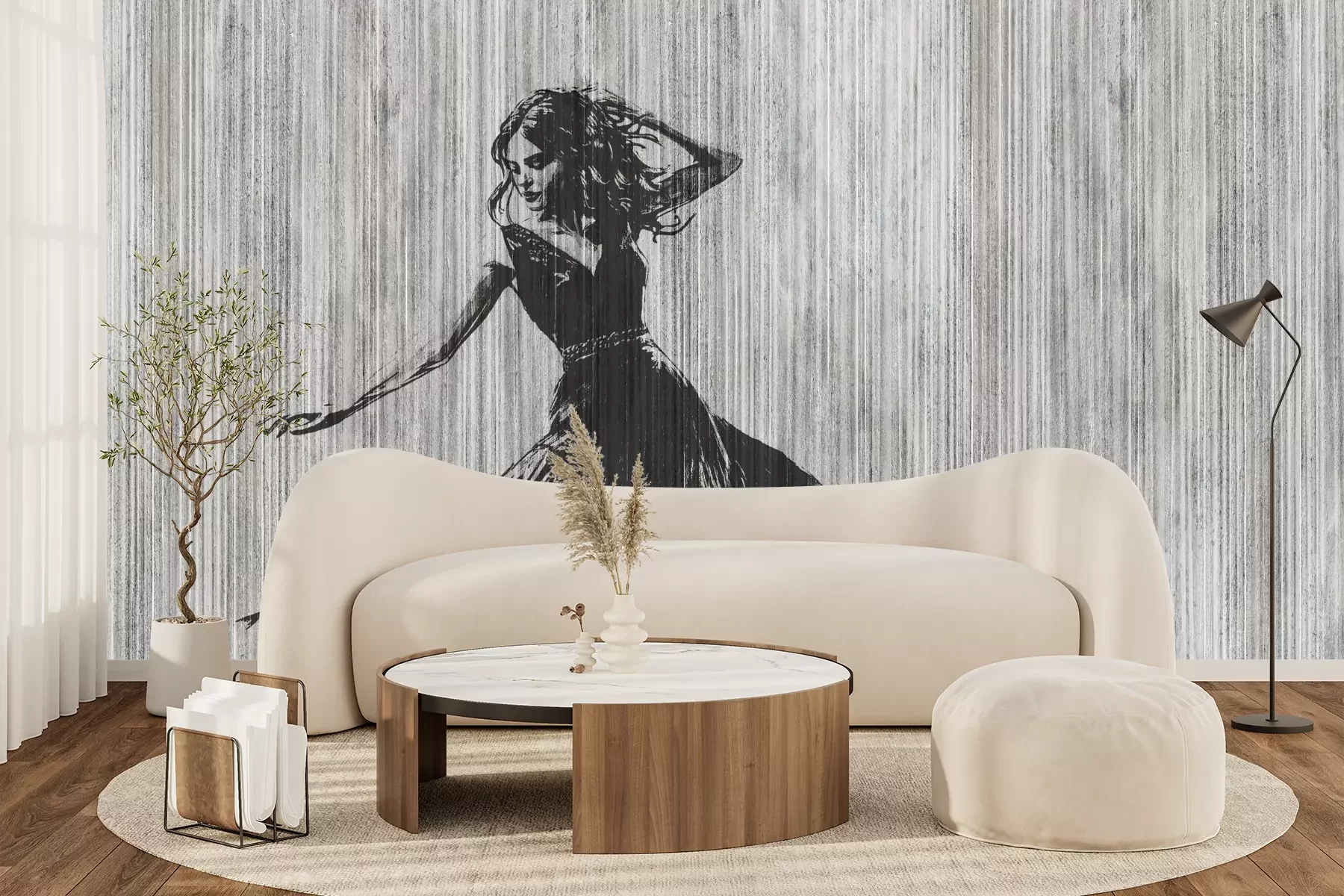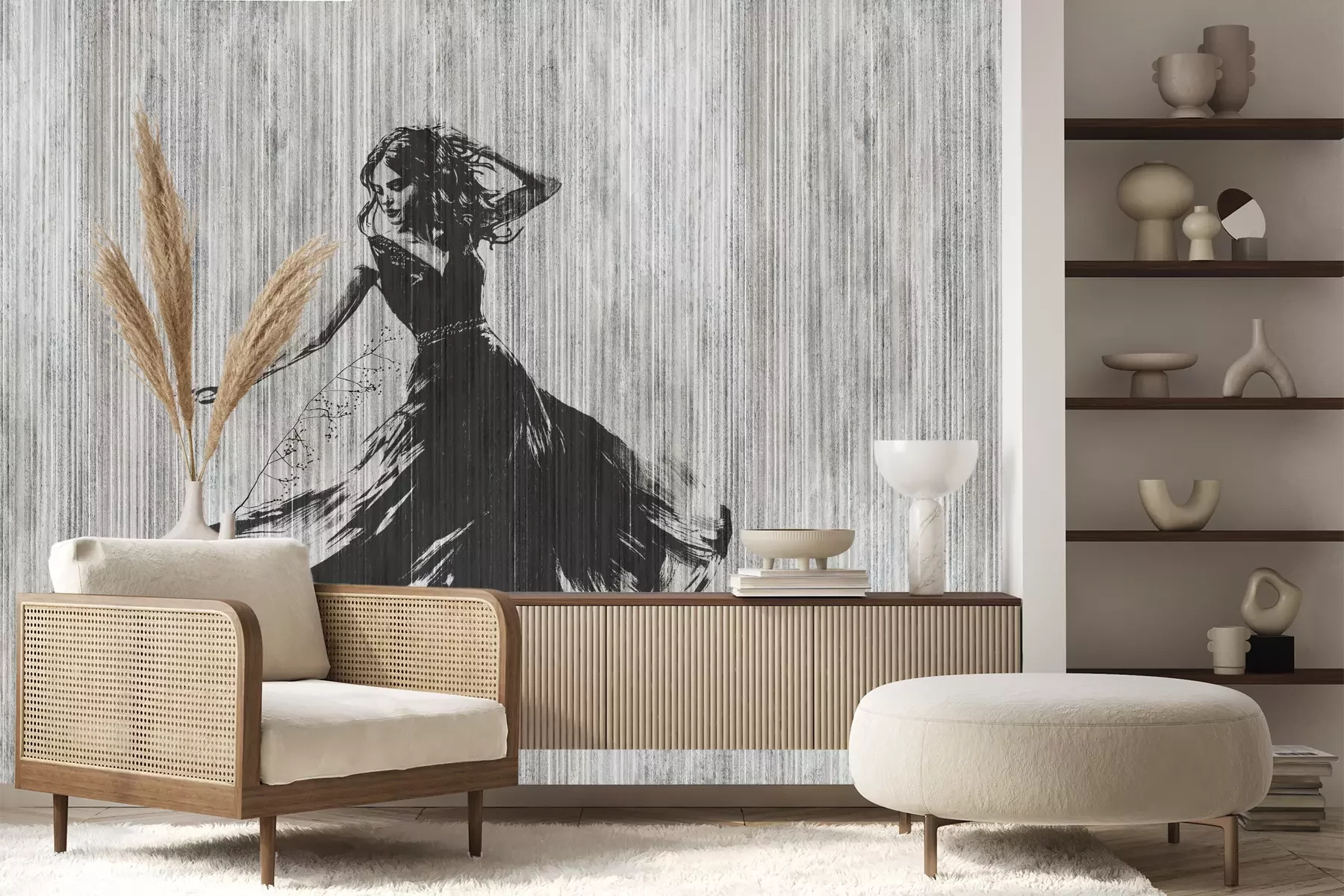 Das Material Premium+ besteht aus einer strukturierten Vinyl-Oberschicht und einem Trägermaterial (Vlies) mit einer Grammatur von 255 g/m², das kleine Unebenheiten der Wand zuverlässig kaschiert. Die feine Sandstruktur verleiht der Oberfläche eine luxuriöse Haptik, während das halbmatte Finish die Tiefe der Farben betont. Das Material ist dampfdurchlässig – so kann diese Fototapete auch in Küchen und Badezimmern eingesetzt werden. Die maximale Breite einer Tapetenbahn beträgt 100 cm. Bei größeren Abmessungen besteht die Fototapete aus mehreren gleich großen Bahnen. Der Kleber wird direkt auf die Wand aufgetragen, und die Fototapete wird auf Stoß angebracht, was für einen ästhetischen Effekt ohne sichtbare Fugen sorgt. Die Oberfläche ist pflegeleicht und kann bei Bedarf sanft mit einem feuchten Tuch abgewischt werden.
