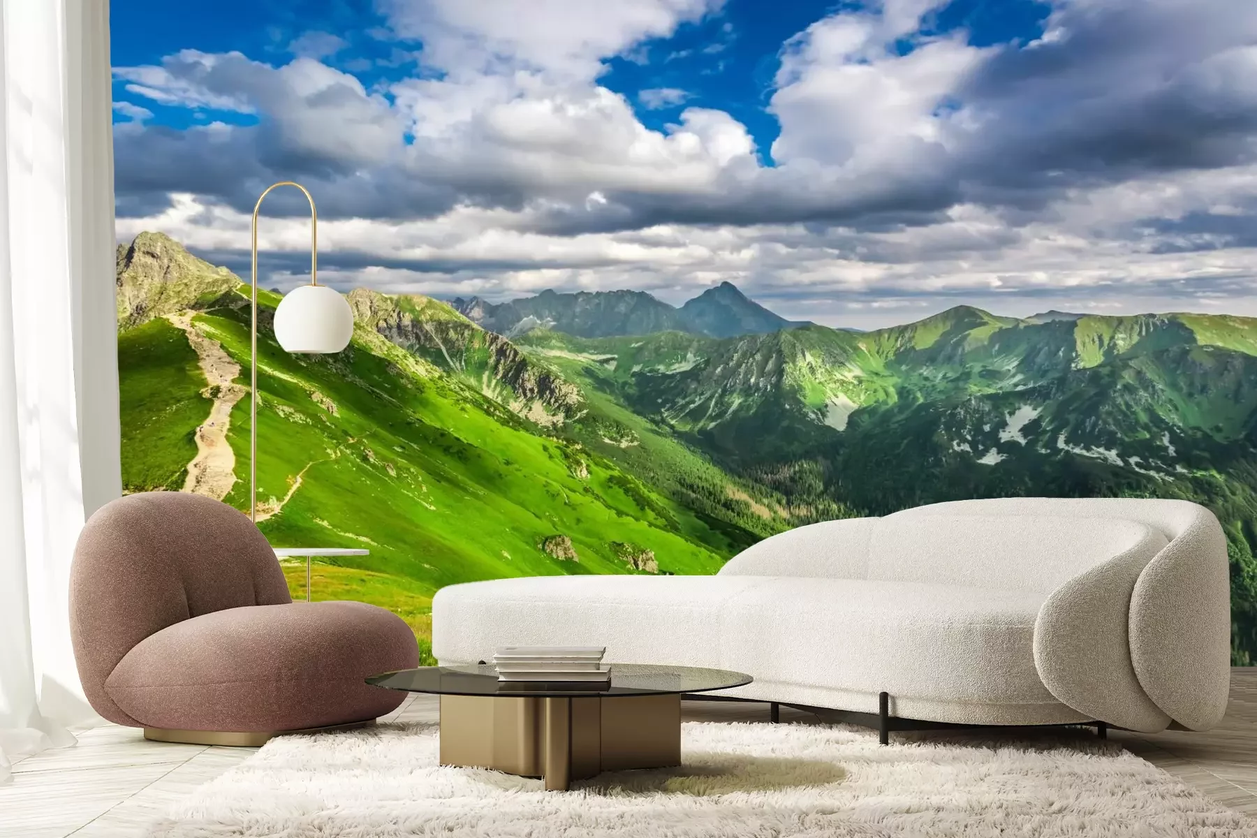 Das Material Premium+ besteht aus einer strukturierten Vinyl-Oberschicht und einem Trägermaterial (Vlies) mit einer Grammatur von 255 g/m², das kleine Unebenheiten der Wand zuverlässig kaschiert. Die feine Sandstruktur verleiht der Oberfläche eine luxuriöse Haptik, während das halbmatte Finish die Tiefe der Farben betont. Das Material ist dampfdurchlässig – so kann diese Fototapete auch in Küchen und Badezimmern eingesetzt werden. Die maximale Breite einer Tapetenbahn beträgt 100 cm. Bei größeren Abmessungen besteht die Fototapete aus mehreren gleich großen Bahnen. Der Kleber wird direkt auf die Wand aufgetragen, und die Fototapete wird auf Stoß angebracht, was für einen ästhetischen Effekt ohne sichtbare Fugen sorgt. Die Oberfläche ist pflegeleicht und kann bei Bedarf sanft mit einem feuchten Tuch abgewischt werden.