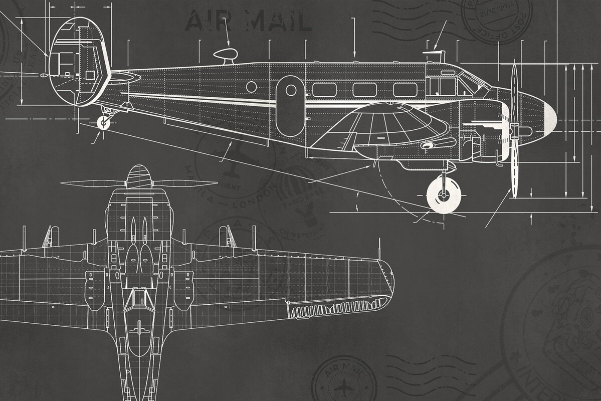 Fototapete: Technische Skizze und Konstruktionszeichnung eines Flugzeugs