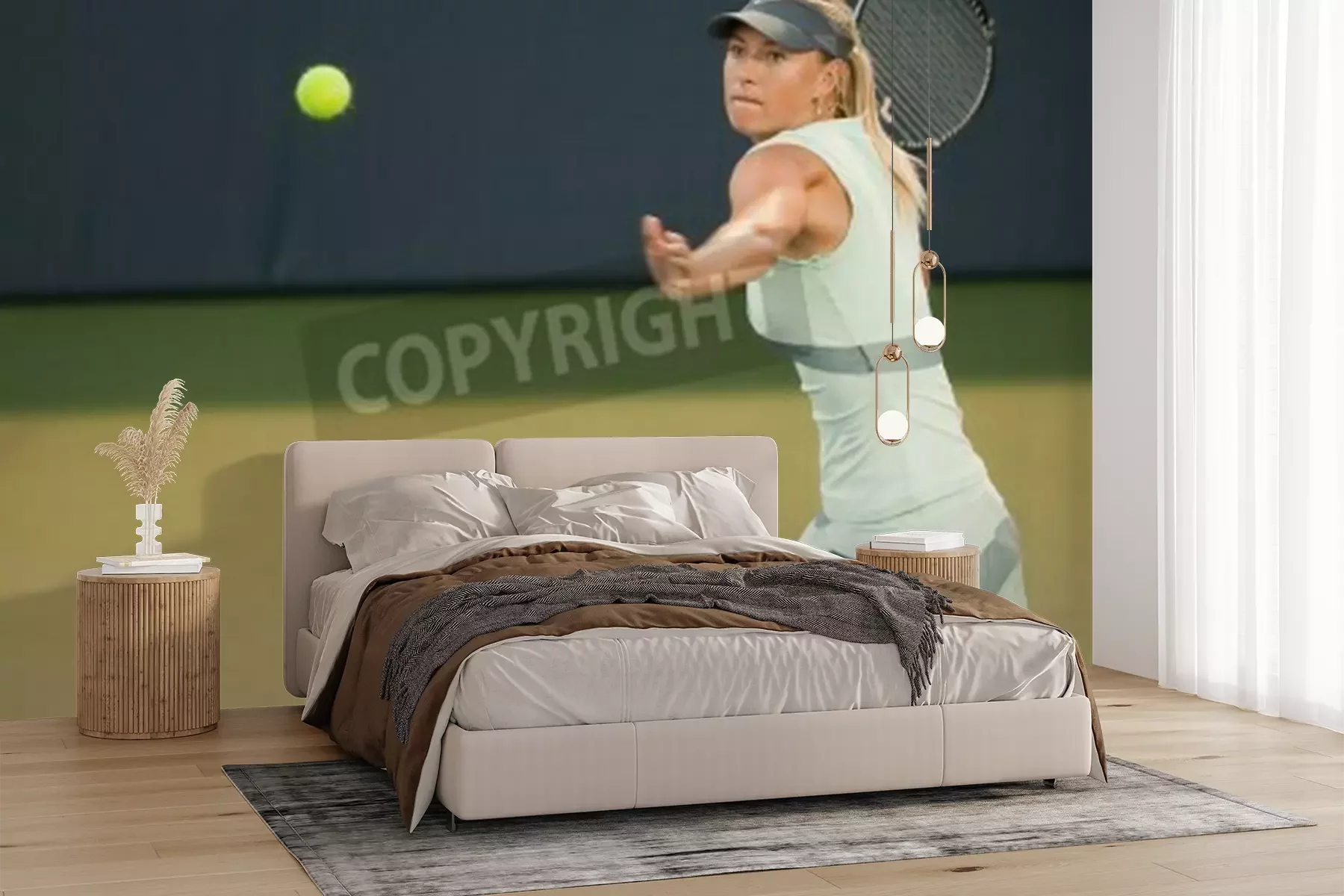 Fototapete Tennisspielerin schlägt den Ball zurück