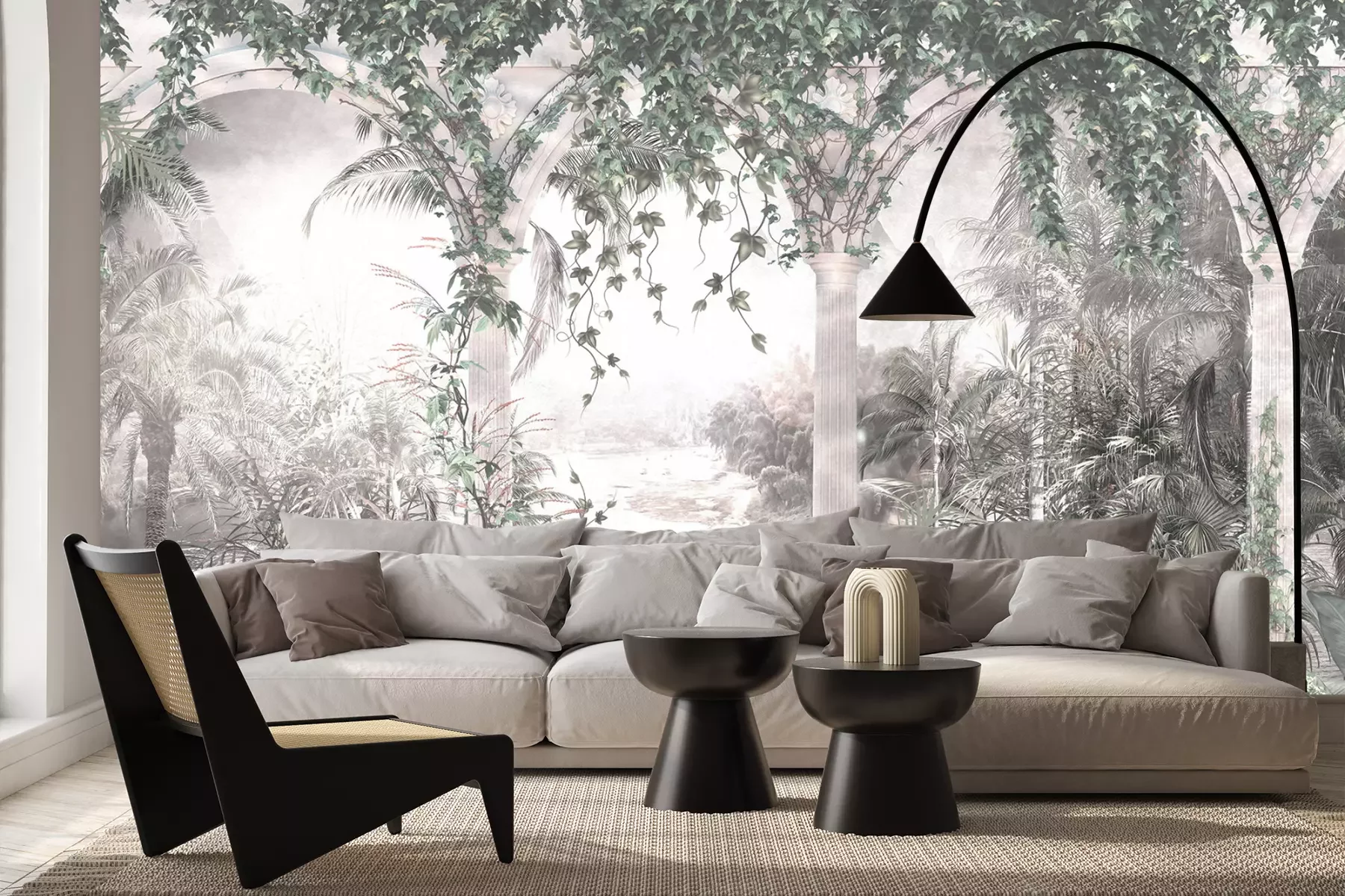 Das Material Premium+ besteht aus einer strukturierten Vinyl-Oberschicht und einem Trägermaterial (Vlies) mit einer Grammatur von 255 g/m², das kleine Unebenheiten der Wand zuverlässig kaschiert. Die feine Sandstruktur verleiht der Oberfläche eine luxuriöse Haptik, während das halbmatte Finish die Tiefe der Farben betont. Das Material ist dampfdurchlässig – so kann diese Fototapete auch in Küchen und Badezimmern eingesetzt werden. Die maximale Breite einer Tapetenbahn beträgt 100 cm. Bei größeren Abmessungen besteht die Fototapete aus mehreren gleich großen Bahnen. Der Kleber wird direkt auf die Wand aufgetragen, und die Fototapete wird auf Stoß angebracht, was für einen ästhetischen Effekt ohne sichtbare Fugen sorgt. Die Oberfläche ist pflegeleicht und kann bei Bedarf sanft mit einem feuchten Tuch abgewischt werden.