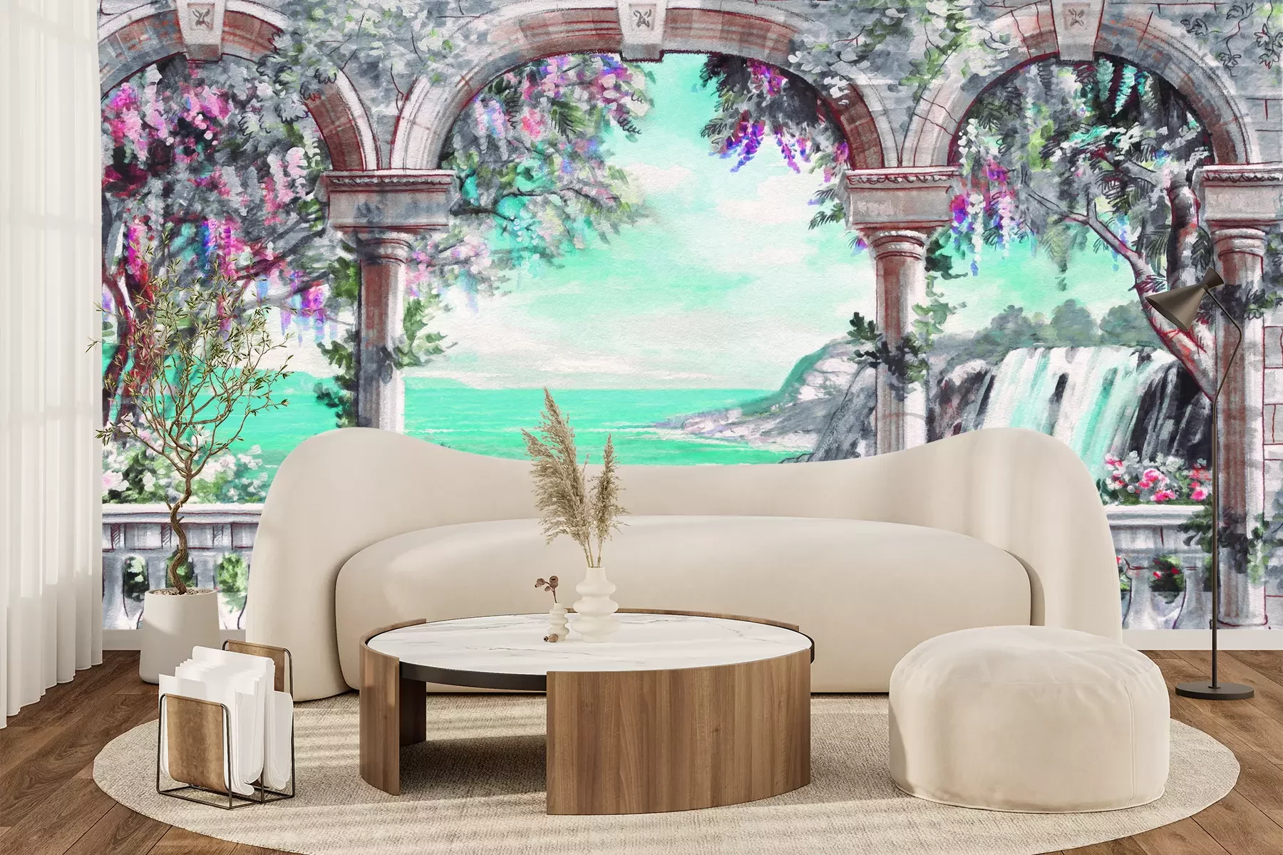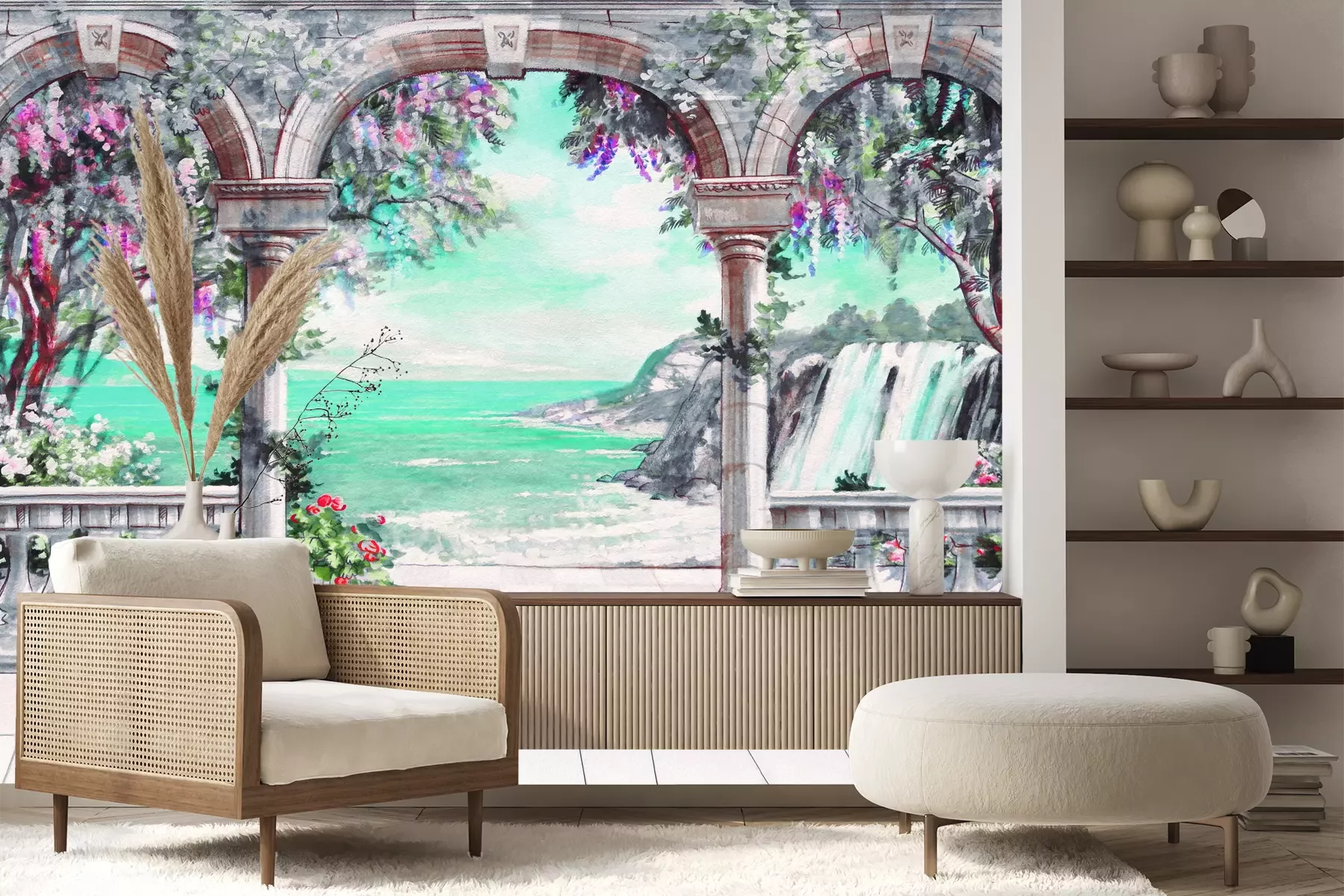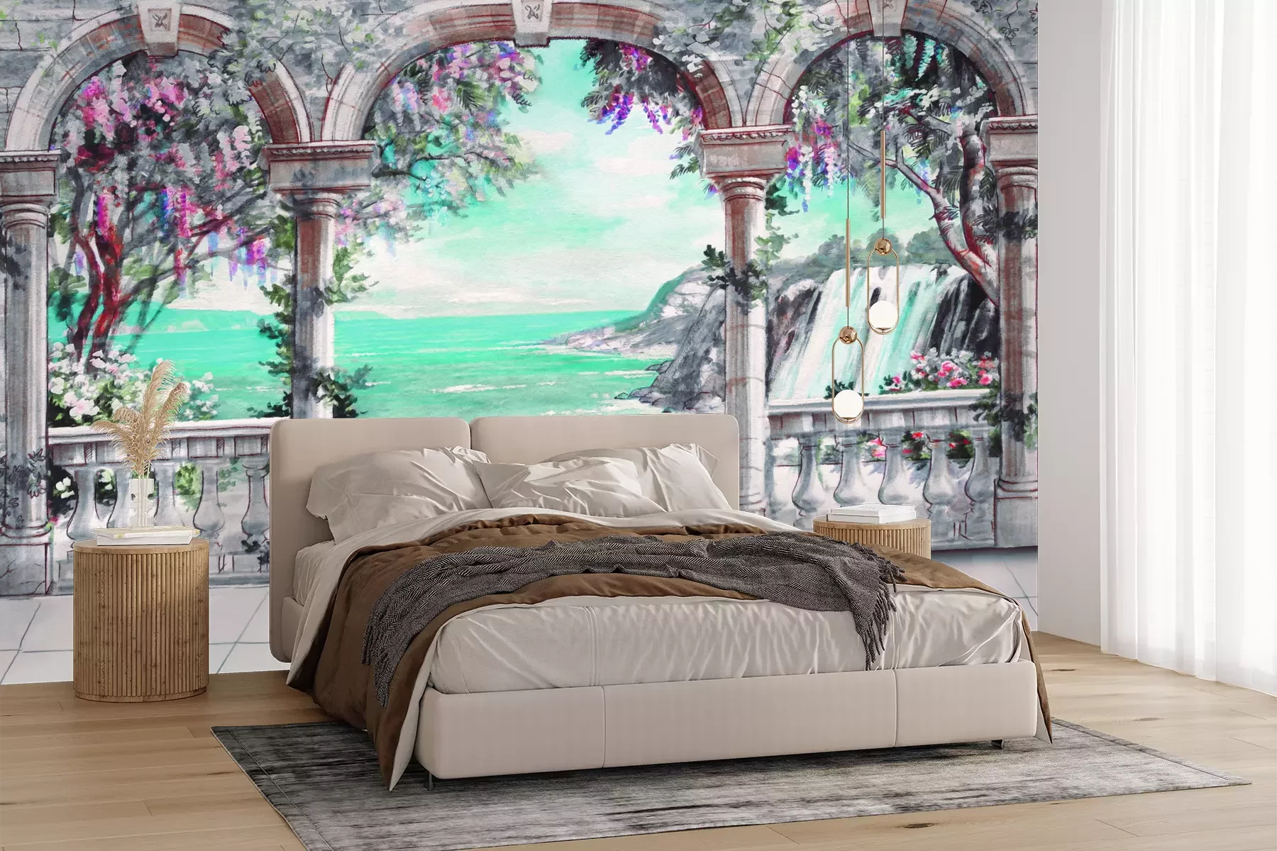 Das Material Premium+ besteht aus einer strukturierten Vinyl-Oberschicht und einem Trägermaterial (Vlies) mit einer Grammatur von 255 g/m², das kleine Unebenheiten der Wand zuverlässig kaschiert. Die feine Sandstruktur verleiht der Oberfläche eine luxuriöse Haptik, während das halbmatte Finish die Tiefe der Farben betont. Das Material ist dampfdurchlässig – so kann diese Fototapete auch in Küchen und Badezimmern eingesetzt werden. Die maximale Breite einer Tapetenbahn beträgt 100 cm. Bei größeren Abmessungen besteht die Fototapete aus mehreren gleich großen Bahnen. Der Kleber wird direkt auf die Wand aufgetragen, und die Fototapete wird auf Stoß angebracht, was für einen ästhetischen Effekt ohne sichtbare Fugen sorgt. Die Oberfläche ist pflegeleicht und kann bei Bedarf sanft mit einem feuchten Tuch abgewischt werden.