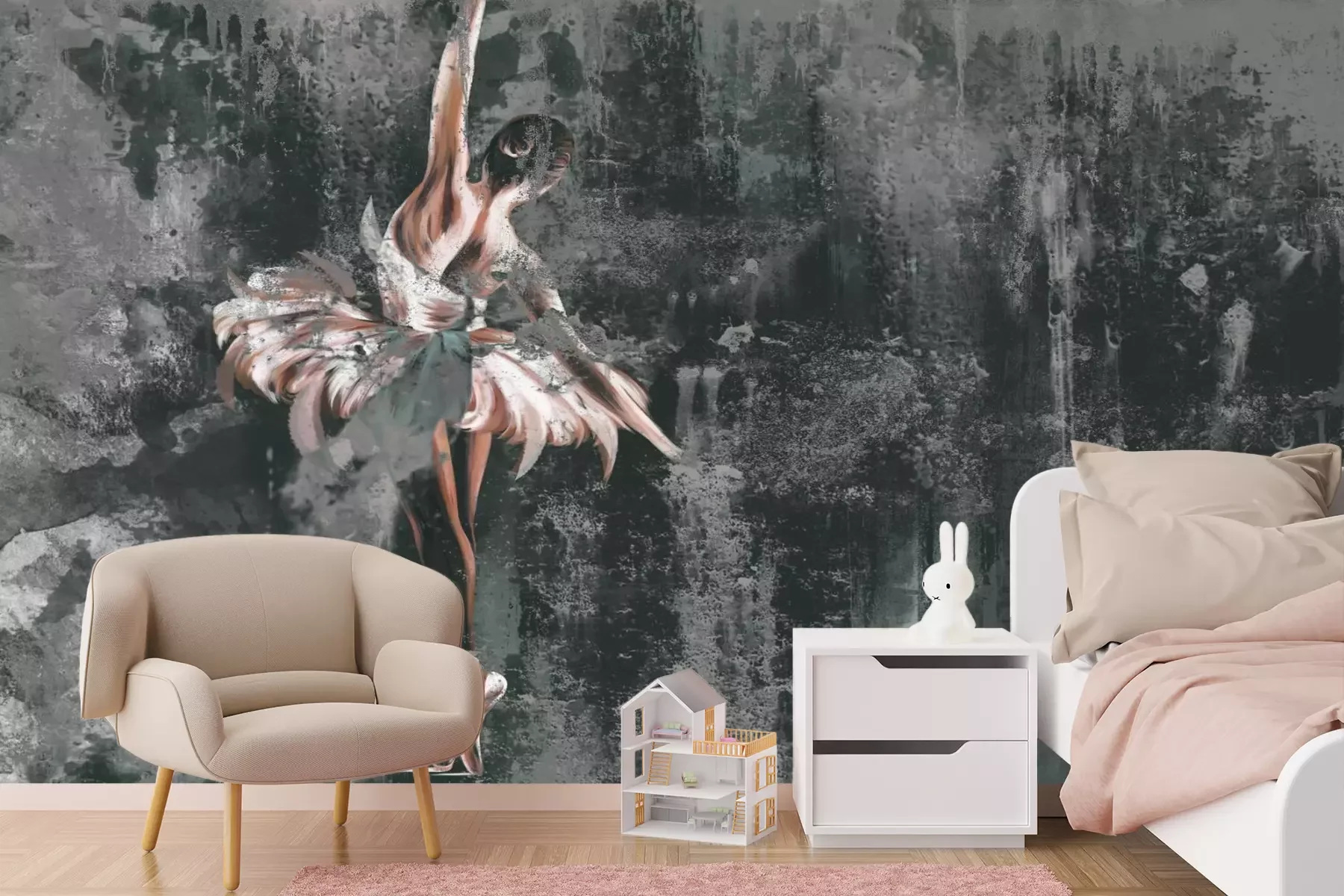 Das Material Premium+ besteht aus einer strukturierten Vinyl-Oberschicht und einem Trägermaterial (Vlies) mit einer Grammatur von 255 g/m², das kleine Unebenheiten der Wand zuverlässig kaschiert. Die feine Sandstruktur verleiht der Oberfläche eine luxuriöse Haptik, während das halbmatte Finish die Tiefe der Farben betont. Das Material ist dampfdurchlässig – so kann diese Fototapete auch in Küchen und Badezimmern eingesetzt werden. Die maximale Breite einer Tapetenbahn beträgt 100 cm. Bei größeren Abmessungen besteht die Fototapete aus mehreren gleich großen Bahnen. Der Kleber wird direkt auf die Wand aufgetragen, und die Fototapete wird auf Stoß angebracht, was für einen ästhetischen Effekt ohne sichtbare Fugen sorgt. Die Oberfläche ist pflegeleicht und kann bei Bedarf sanft mit einem feuchten Tuch abgewischt werden.