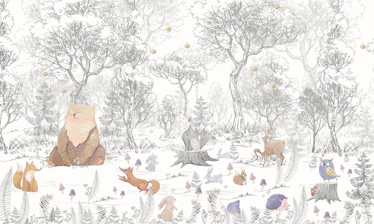 Fototapete: Tiere im Wald Illustration im Märchenstil