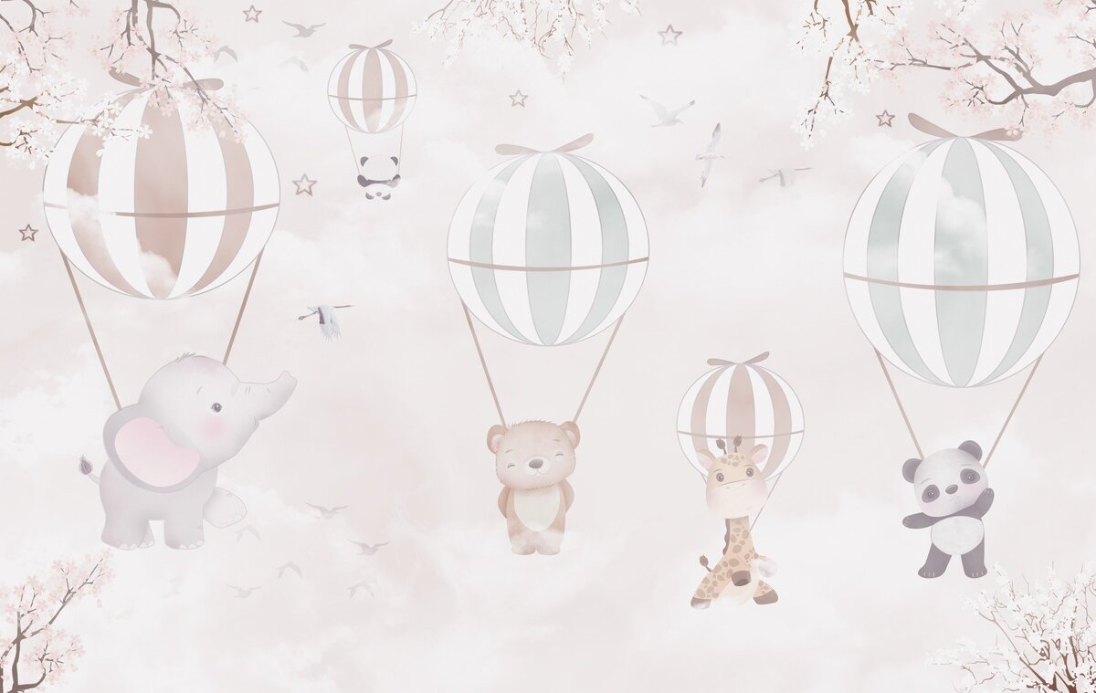 Fototapete: Tiere mit Luftballons gegen den Himmel