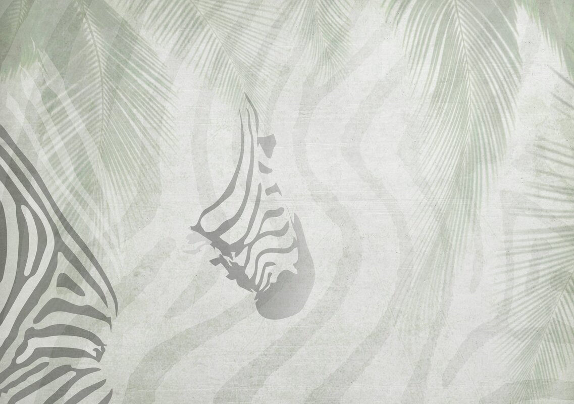 Fototapete: Tierisches Zebra -Muster und Palmblätter