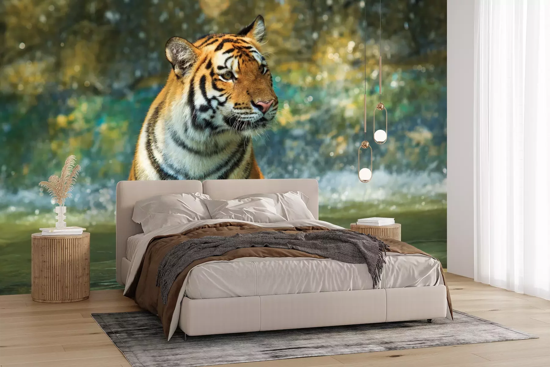 Das Material Premium+ besteht aus einer strukturierten Vinyl-Oberschicht und einem Trägermaterial (Vlies) mit einer Grammatur von 255 g/m², das kleine Unebenheiten der Wand zuverlässig kaschiert. Die feine Sandstruktur verleiht der Oberfläche eine luxuriöse Haptik, während das halbmatte Finish die Tiefe der Farben betont. Das Material ist dampfdurchlässig – so kann diese Fototapete auch in Küchen und Badezimmern eingesetzt werden. Die maximale Breite einer Tapetenbahn beträgt 100 cm. Bei größeren Abmessungen besteht die Fototapete aus mehreren gleich großen Bahnen. Der Kleber wird direkt auf die Wand aufgetragen, und die Fototapete wird auf Stoß angebracht, was für einen ästhetischen Effekt ohne sichtbare Fugen sorgt. Die Oberfläche ist pflegeleicht und kann bei Bedarf sanft mit einem feuchten Tuch abgewischt werden.