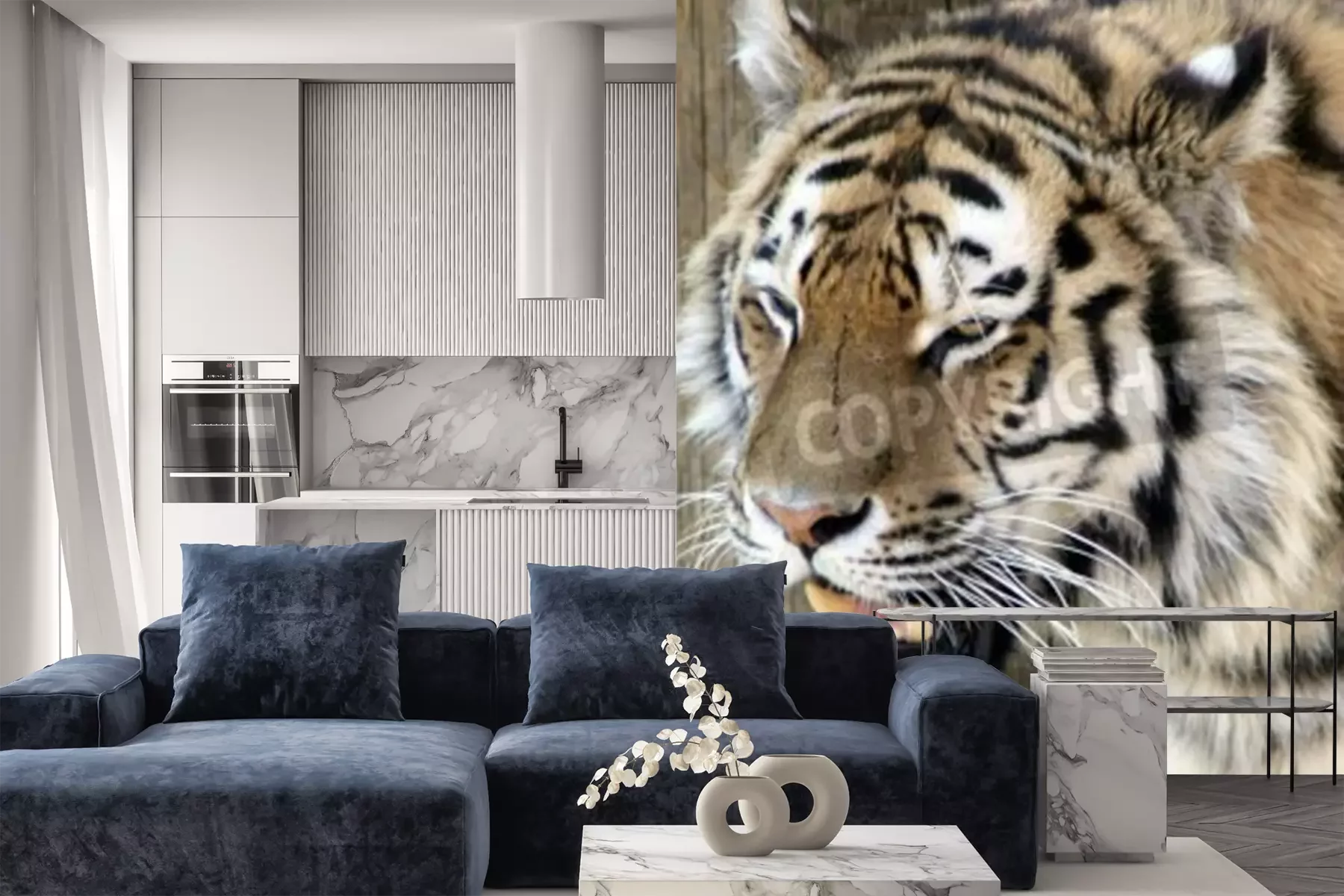 Fototapete Tiger mit zusammengekniffenen augen