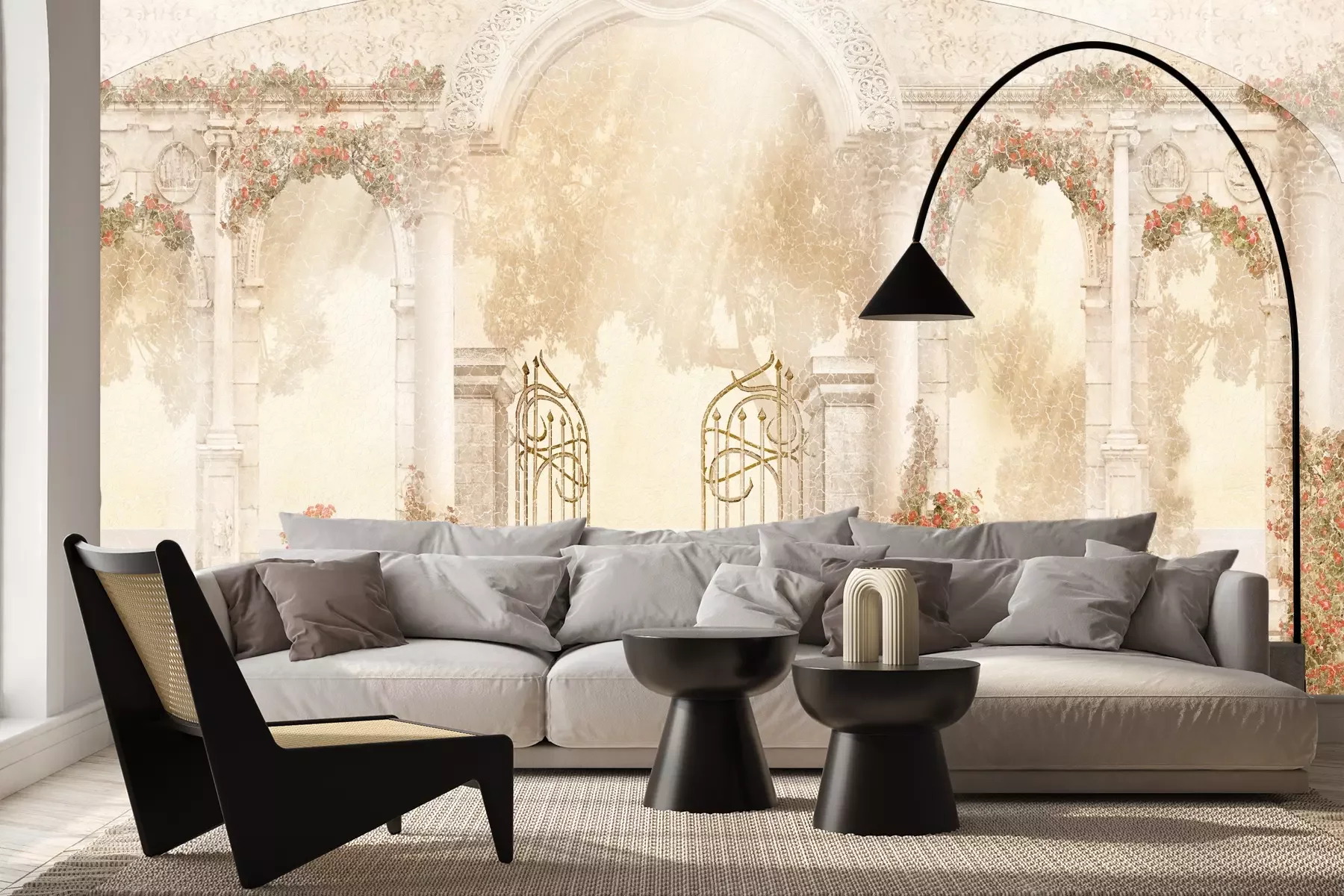 Das Material Premium+ besteht aus einer strukturierten Vinyl-Oberschicht und einem Trägermaterial (Vlies) mit einer Grammatur von 255 g/m², das kleine Unebenheiten der Wand zuverlässig kaschiert. Die feine Sandstruktur verleiht der Oberfläche eine luxuriöse Haptik, während das halbmatte Finish die Tiefe der Farben betont. Das Material ist dampfdurchlässig – so kann diese Fototapete auch in Küchen und Badezimmern eingesetzt werden. Die maximale Breite einer Tapetenbahn beträgt 100 cm. Bei größeren Abmessungen besteht die Fototapete aus mehreren gleich großen Bahnen. Der Kleber wird direkt auf die Wand aufgetragen, und die Fototapete wird auf Stoß angebracht, was für einen ästhetischen Effekt ohne sichtbare Fugen sorgt. Die Oberfläche ist pflegeleicht und kann bei Bedarf sanft mit einem feuchten Tuch abgewischt werden.