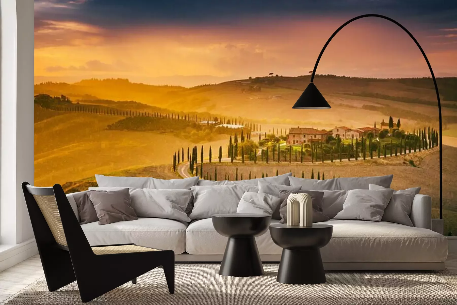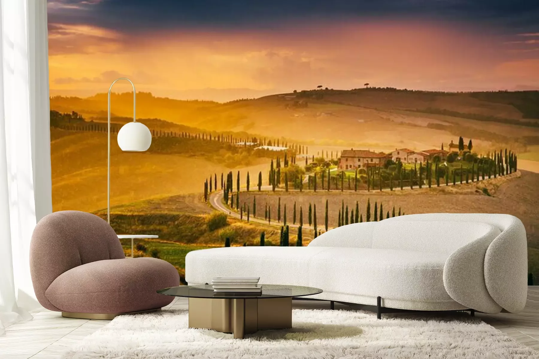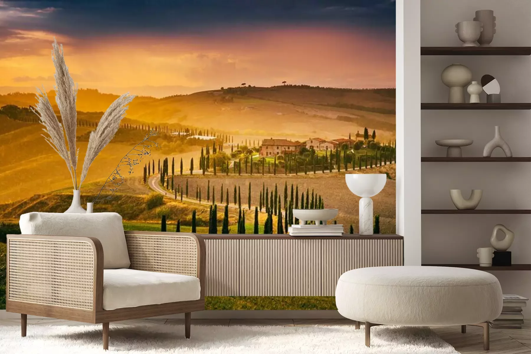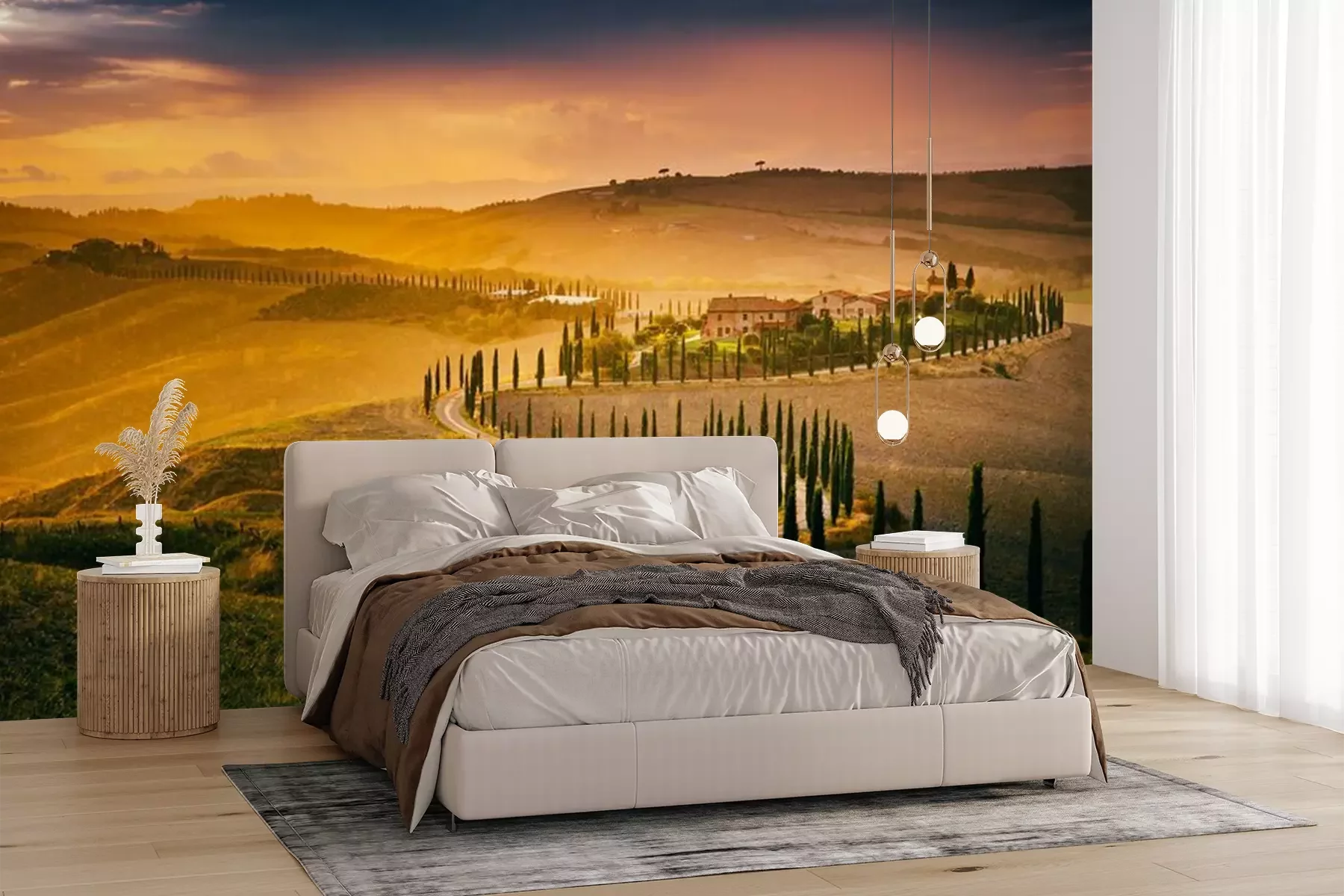 Fototapete Toskanische Felder im Regen