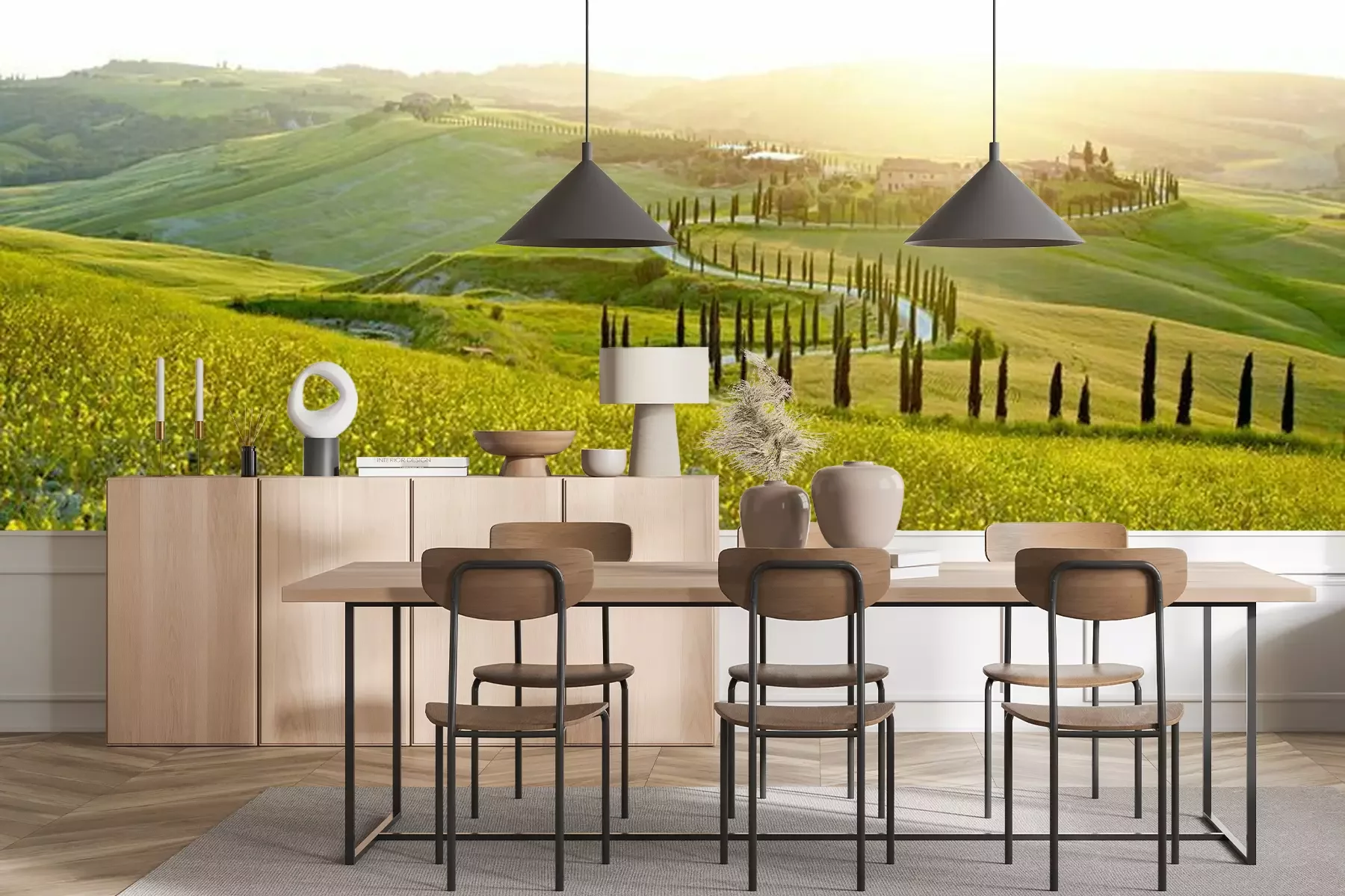 Das Material Premium+ besteht aus einer strukturierten Vinyl-Oberschicht und einem Trägermaterial (Vlies) mit einer Grammatur von 255 g/m², das kleine Unebenheiten der Wand zuverlässig kaschiert. Die feine Sandstruktur verleiht der Oberfläche eine luxuriöse Haptik, während das halbmatte Finish die Tiefe der Farben betont. Das Material ist dampfdurchlässig – so kann diese Fototapete auch in Küchen und Badezimmern eingesetzt werden. Die maximale Breite einer Tapetenbahn beträgt 100 cm. Bei größeren Abmessungen besteht die Fototapete aus mehreren gleich großen Bahnen. Der Kleber wird direkt auf die Wand aufgetragen, und die Fototapete wird auf Stoß angebracht, was für einen ästhetischen Effekt ohne sichtbare Fugen sorgt. Die Oberfläche ist pflegeleicht und kann bei Bedarf sanft mit einem feuchten Tuch abgewischt werden.