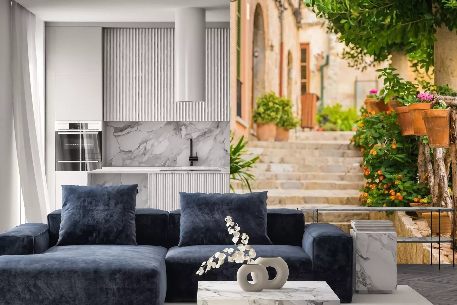 Das Material Premium+ besteht aus einer strukturierten Vinyl-Oberschicht und einem Trägermaterial (Vlies) mit einer Grammatur von 255 g/m², das kleine Unebenheiten der Wand zuverlässig kaschiert. Die feine Sandstruktur verleiht der Oberfläche eine luxuriöse Haptik, während das halbmatte Finish die Tiefe der Farben betont. Das Material ist dampfdurchlässig – so kann diese Fototapete auch in Küchen und Badezimmern eingesetzt werden. Die maximale Breite einer Tapetenbahn beträgt 100 cm. Bei größeren Abmessungen besteht die Fototapete aus mehreren gleich großen Bahnen. Der Kleber wird direkt auf die Wand aufgetragen, und die Fototapete wird auf Stoß angebracht, was für einen ästhetischen Effekt ohne sichtbare Fugen sorgt. Die Oberfläche ist pflegeleicht und kann bei Bedarf sanft mit einem feuchten Tuch abgewischt werden.