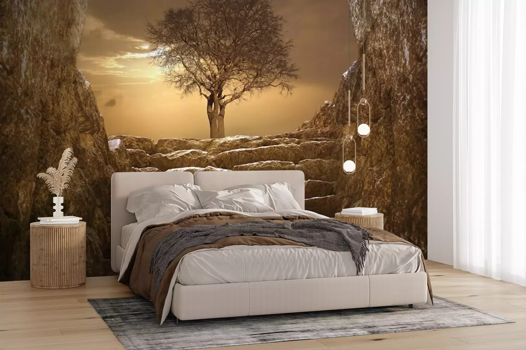 Die Fototapeten werden in Bahnen geliefert. Die Größe und die Anzahl der Bahnen, aus denen die gesamte Fototapete besteht, hängen vom gewählten Material ab. Wenn die Größe die maximale Breite des Materials überschreitet, besteht der Ausdruck aus mehreren gleich großen Bahnen.