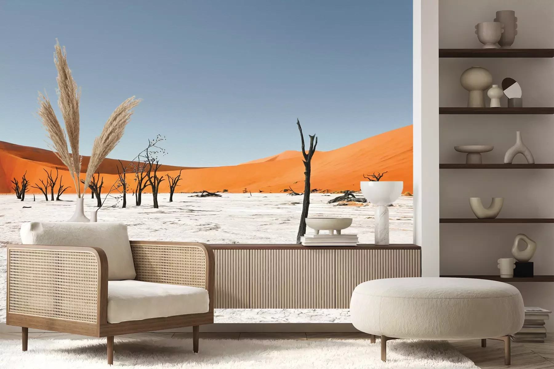 Das Material Premium+ besteht aus einer strukturierten Vinyl-Oberschicht und einem Trägermaterial (Vlies) mit einer Grammatur von 255 g/m², das kleine Unebenheiten der Wand zuverlässig kaschiert. Die feine Sandstruktur verleiht der Oberfläche eine luxuriöse Haptik, während das halbmatte Finish die Tiefe der Farben betont. Das Material ist dampfdurchlässig – so kann diese Fototapete auch in Küchen und Badezimmern eingesetzt werden. Die maximale Breite einer Tapetenbahn beträgt 100 cm. Bei größeren Abmessungen besteht die Fototapete aus mehreren gleich großen Bahnen. Der Kleber wird direkt auf die Wand aufgetragen, und die Fototapete wird auf Stoß angebracht, was für einen ästhetischen Effekt ohne sichtbare Fugen sorgt. Die Oberfläche ist pflegeleicht und kann bei Bedarf sanft mit einem feuchten Tuch abgewischt werden.