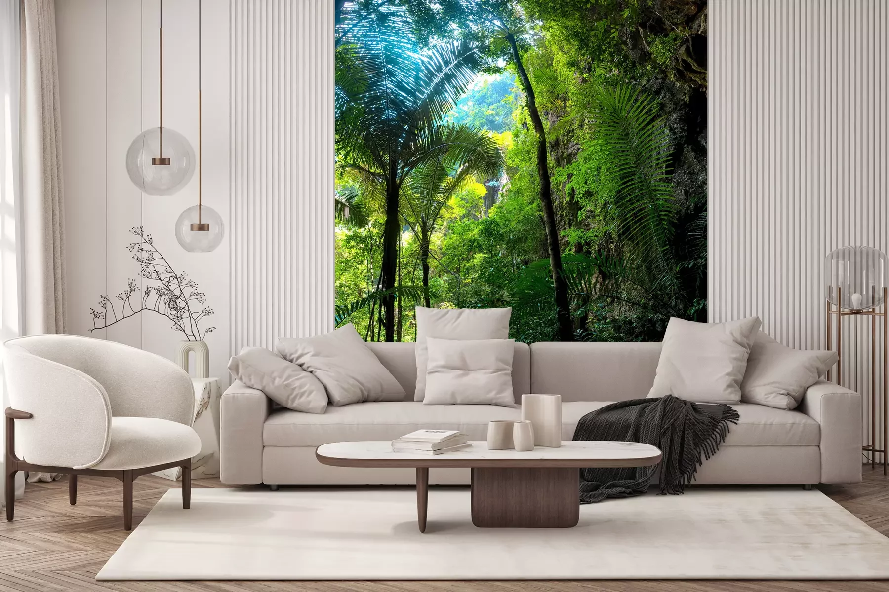 Die Fototapeten werden in Bahnen geliefert. Die Größe und die Anzahl der Bahnen, aus denen die gesamte Fototapete besteht, hängen vom gewählten Material ab. Wenn die Größe die maximale Breite des Materials überschreitet, besteht der Ausdruck aus mehreren gleich großen Bahnen.