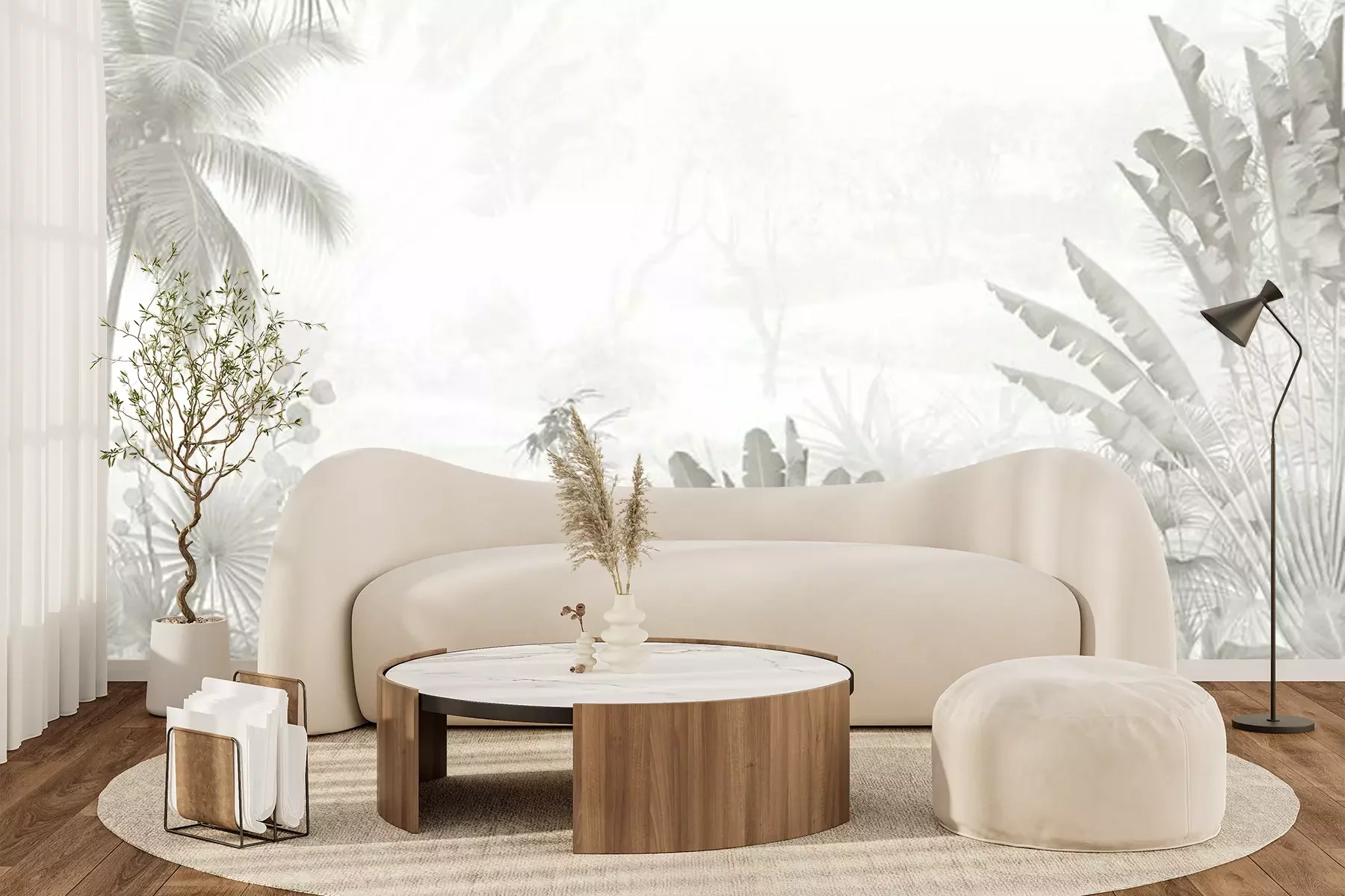 Die Fototapeten werden in Bahnen geliefert. Die Größe und die Anzahl der Bahnen, aus denen die gesamte Fototapete besteht, hängen vom gewählten Material ab. Wenn die Größe die maximale Breite des Materials überschreitet, besteht der Ausdruck aus mehreren gleich großen Bahnen.