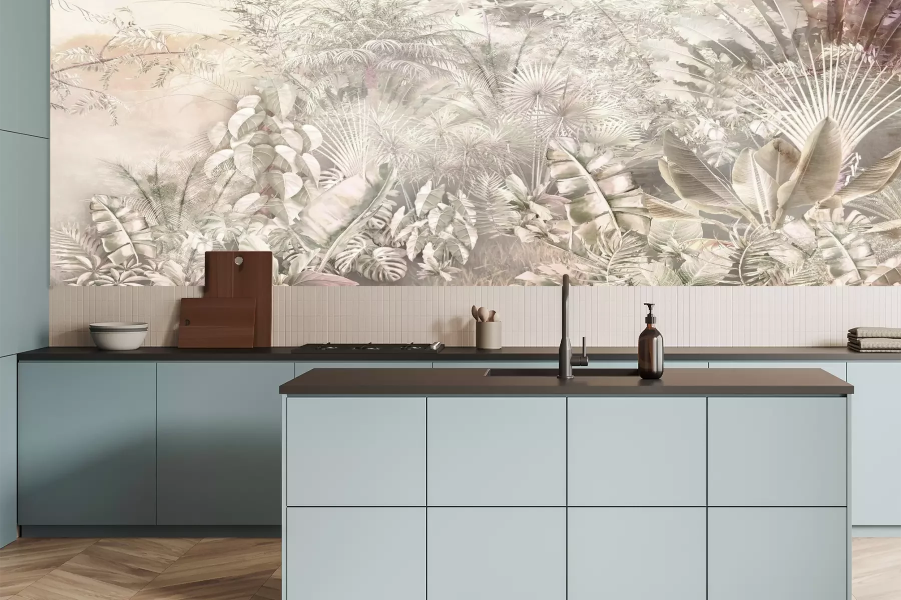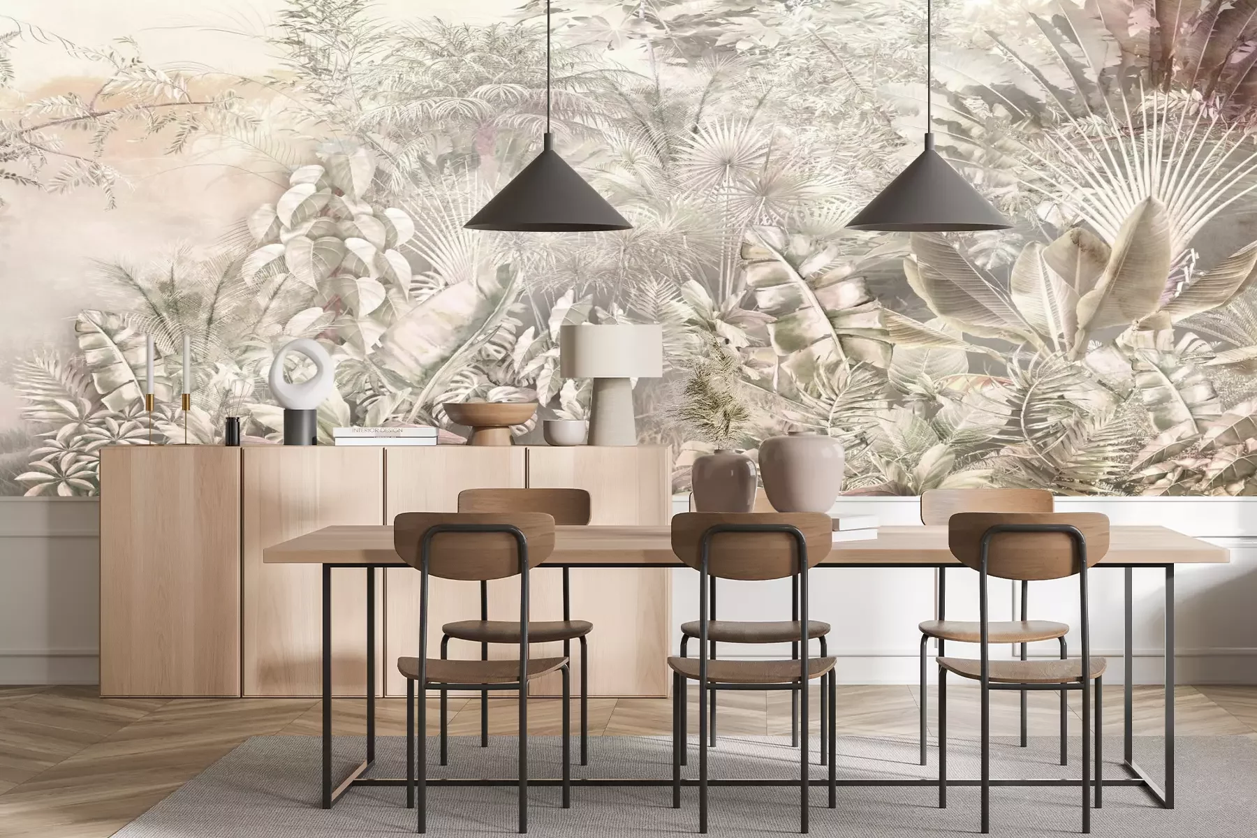 Das Material Premium+ besteht aus einer strukturierten Vinyl-Oberschicht und einem Trägermaterial (Vlies) mit einer Grammatur von 255 g/m², das kleine Unebenheiten der Wand zuverlässig kaschiert. Die feine Sandstruktur verleiht der Oberfläche eine luxuriöse Haptik, während das halbmatte Finish die Tiefe der Farben betont. Das Material ist dampfdurchlässig – so kann diese Fototapete auch in Küchen und Badezimmern eingesetzt werden. Die maximale Breite einer Tapetenbahn beträgt 100 cm. Bei größeren Abmessungen besteht die Fototapete aus mehreren gleich großen Bahnen. Der Kleber wird direkt auf die Wand aufgetragen, und die Fototapete wird auf Stoß angebracht, was für einen ästhetischen Effekt ohne sichtbare Fugen sorgt. Die Oberfläche ist pflegeleicht und kann bei Bedarf sanft mit einem feuchten Tuch abgewischt werden.