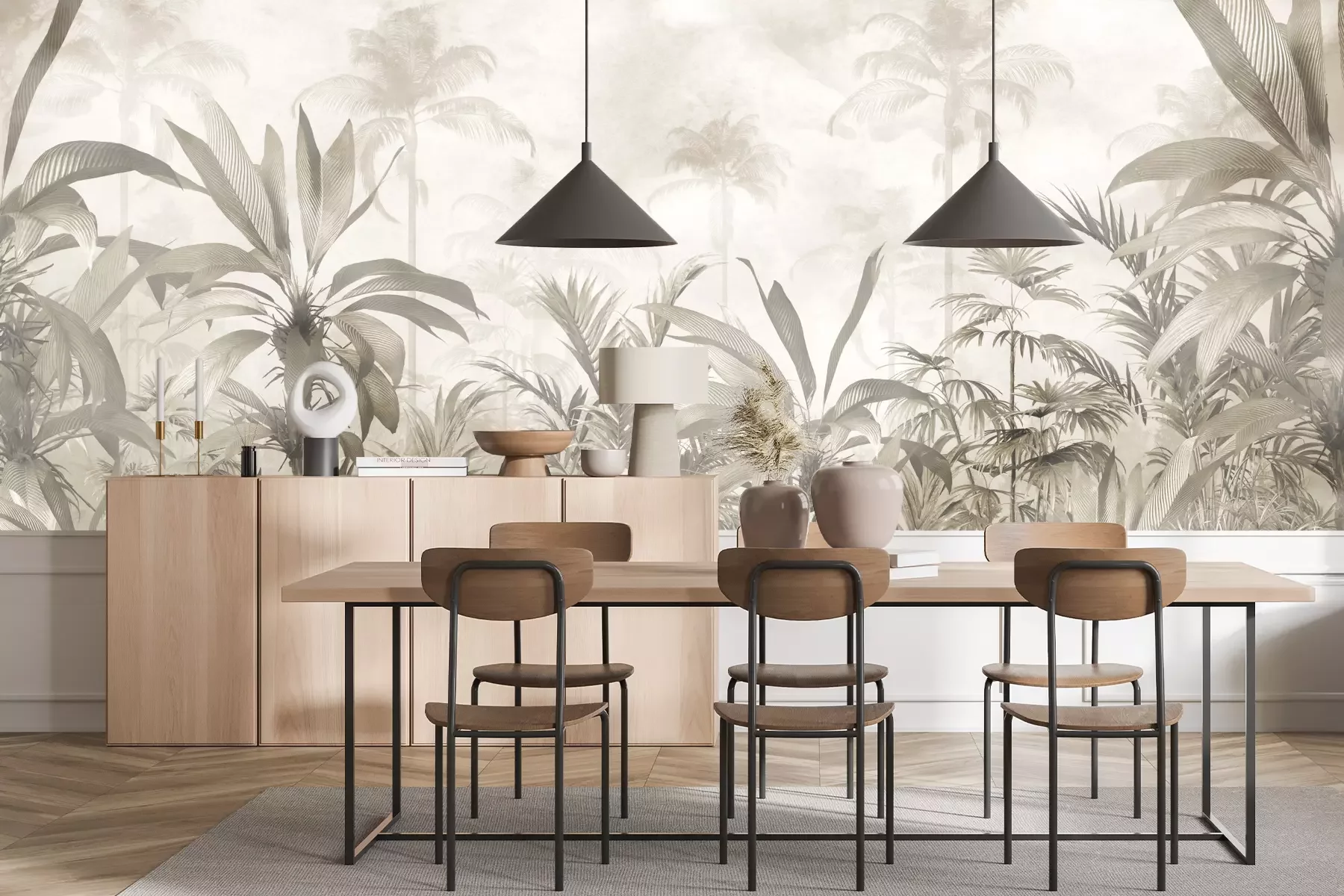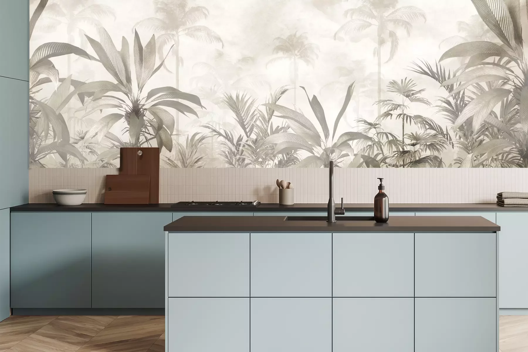 Das Material Premium+ besteht aus einer strukturierten Vinyl-Oberschicht und einem Trägermaterial (Vlies) mit einer Grammatur von 255 g/m², das kleine Unebenheiten der Wand zuverlässig kaschiert. Die feine Sandstruktur verleiht der Oberfläche eine luxuriöse Haptik, während das halbmatte Finish die Tiefe der Farben betont. Das Material ist dampfdurchlässig – so kann diese Fototapete auch in Küchen und Badezimmern eingesetzt werden. Die maximale Breite einer Tapetenbahn beträgt 100 cm. Bei größeren Abmessungen besteht die Fototapete aus mehreren gleich großen Bahnen. Der Kleber wird direkt auf die Wand aufgetragen, und die Fototapete wird auf Stoß angebracht, was für einen ästhetischen Effekt ohne sichtbare Fugen sorgt. Die Oberfläche ist pflegeleicht und kann bei Bedarf sanft mit einem feuchten Tuch abgewischt werden.
